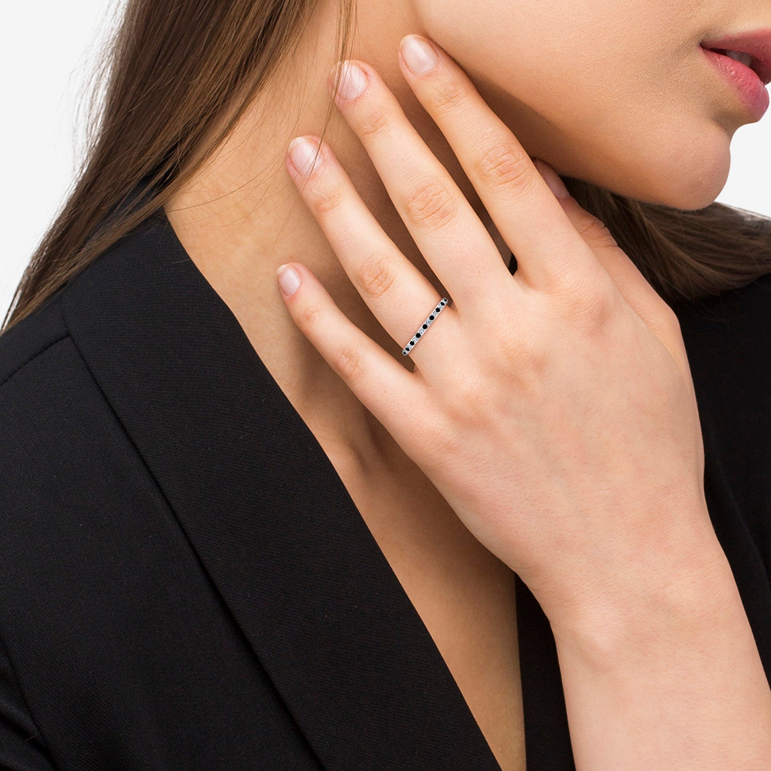 If you're looking for a stunningly simplistic wedding band with a pop of color, then this diamond and Black Diamond eternity option might be the perfect fit.
