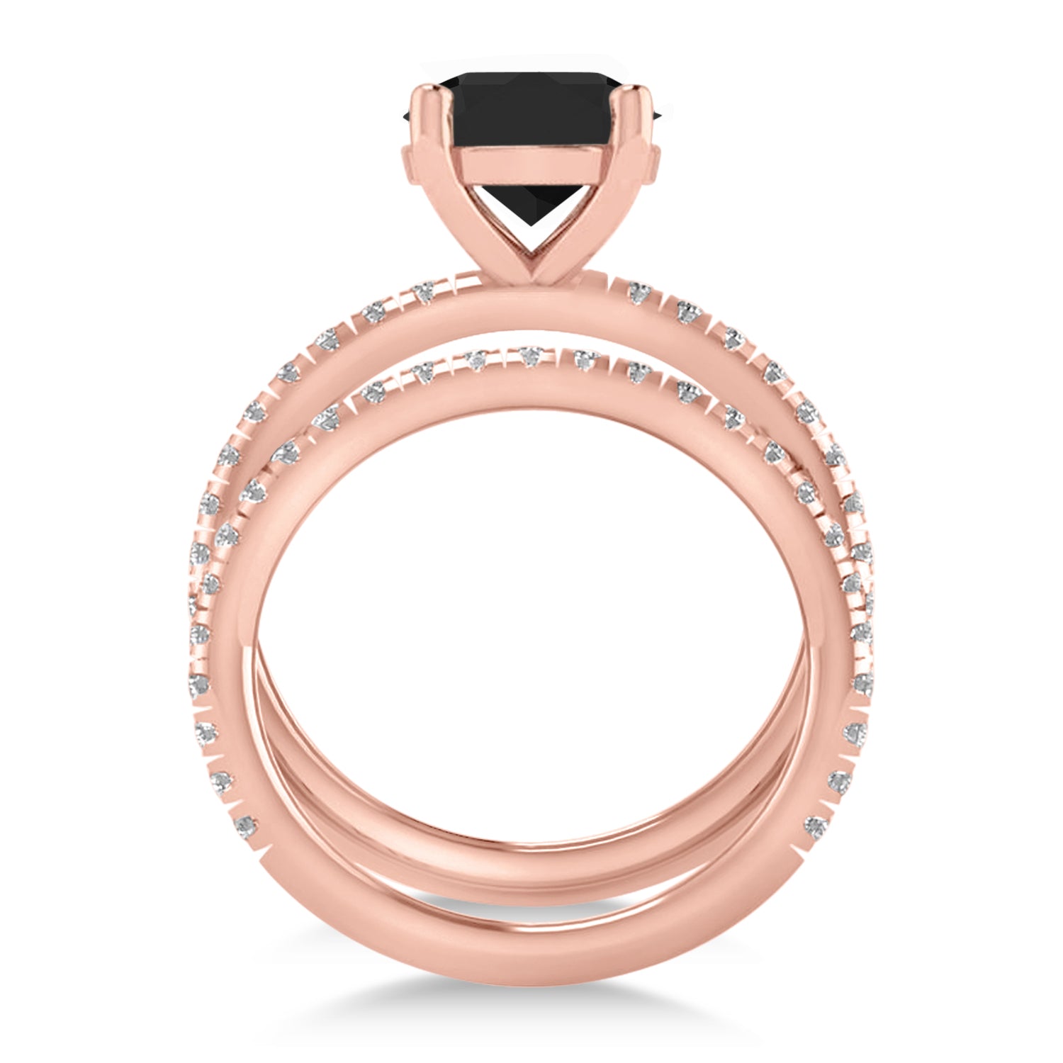 Black & White Diamond Round-Set Semi-Eternity Bridal Set 18k Rose Gold
