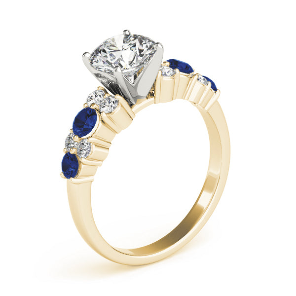 This 14k Yellow Gold blue sapphire and diamond accented garland engagement ring setting adds a...