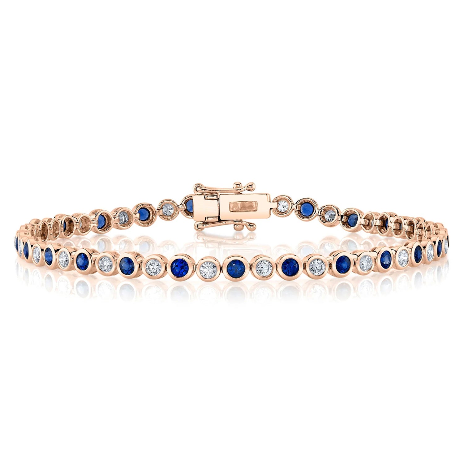 Blue Sapphire & Diamond Tennis Bracelet 14K Rose Gold (2.58ct)