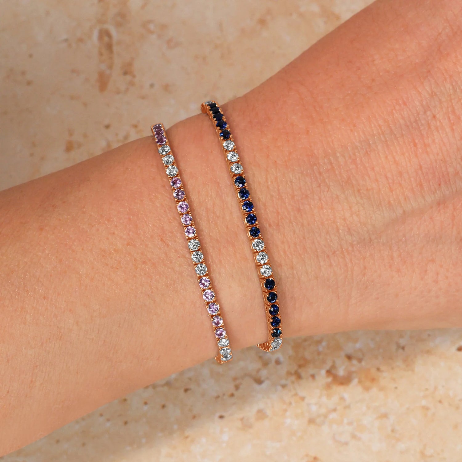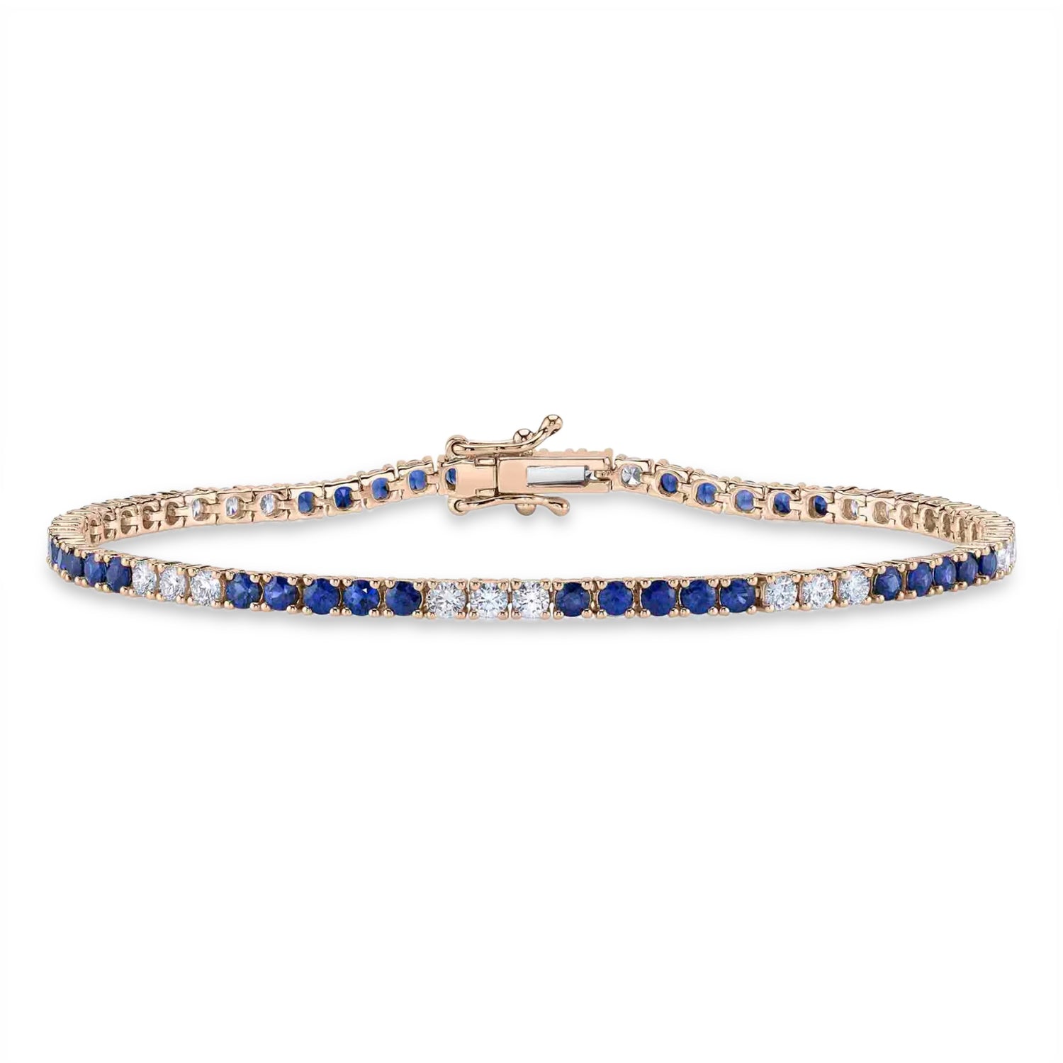 Elevate your elegance with this stunning Blue Sapphire & Diamond Tennis Bracelet, meticulously crafted in 14K rose gold