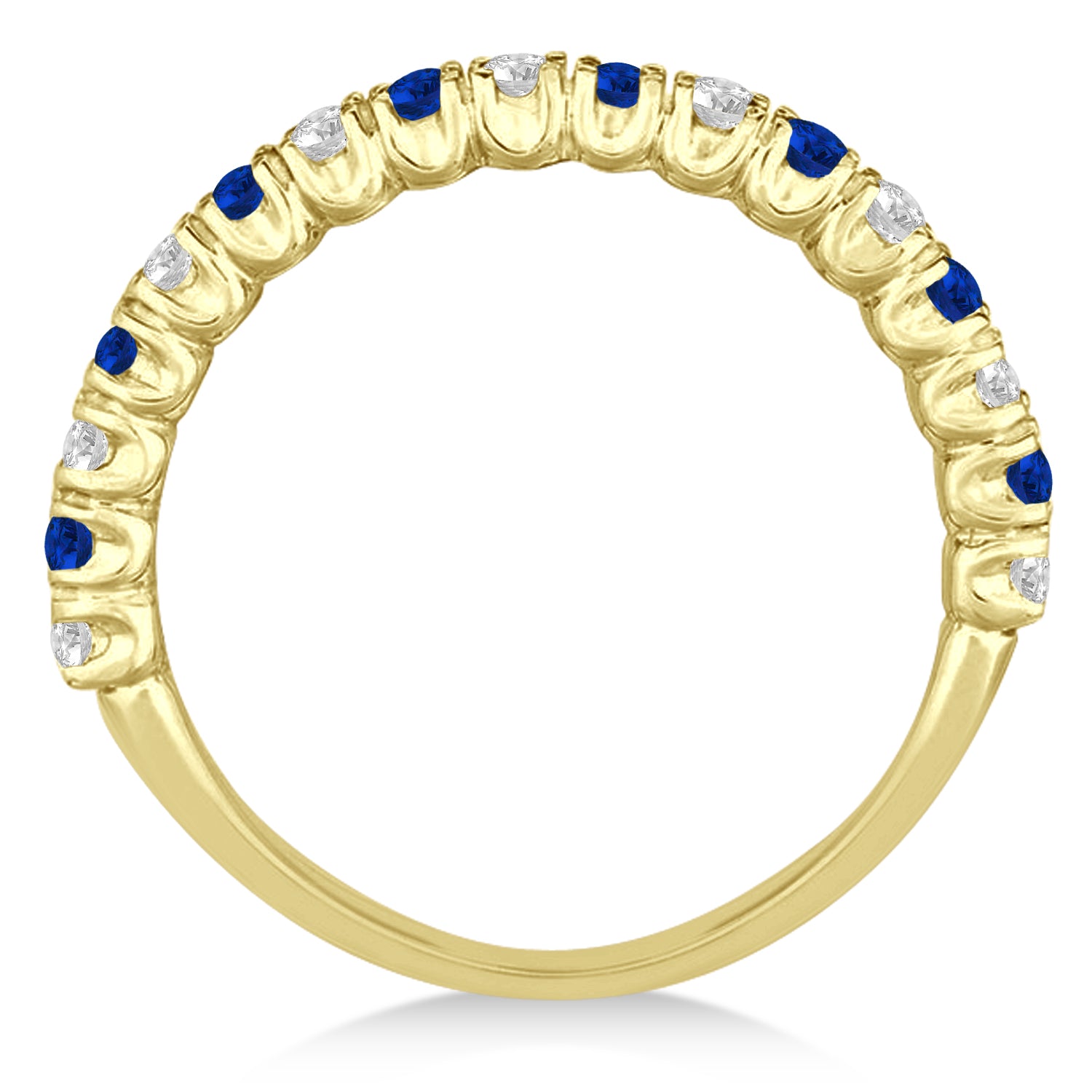 Blue Sapphire & Diamond Wedding Band Anniversary Ring in 14k Yellow Gold (0.75ct)