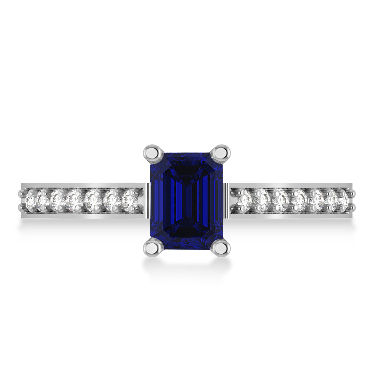 Blue Sapphire & Emerald-Cut Diamond Pre-Set Engagement Ring 14k White Gold (1.09ct)