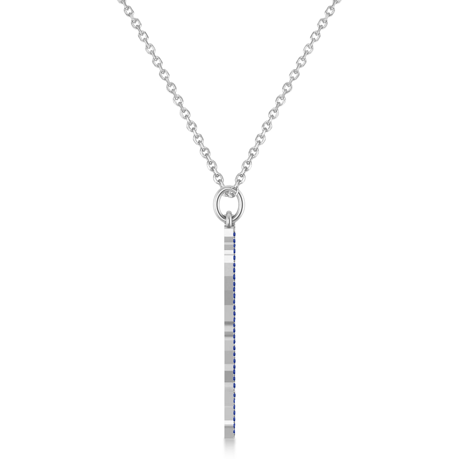 Blue Sapphire Israel Map Charm Pendant Necklace 14K White Gold (0.37ct)