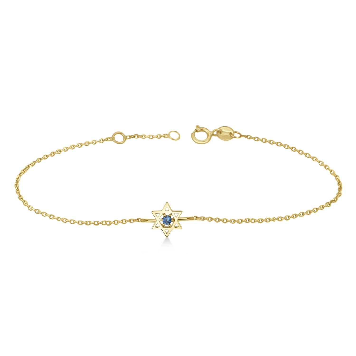 Blue Sapphire Jewish Star of David Petite Bracelet 14K Yellow Gold (0.03ct)