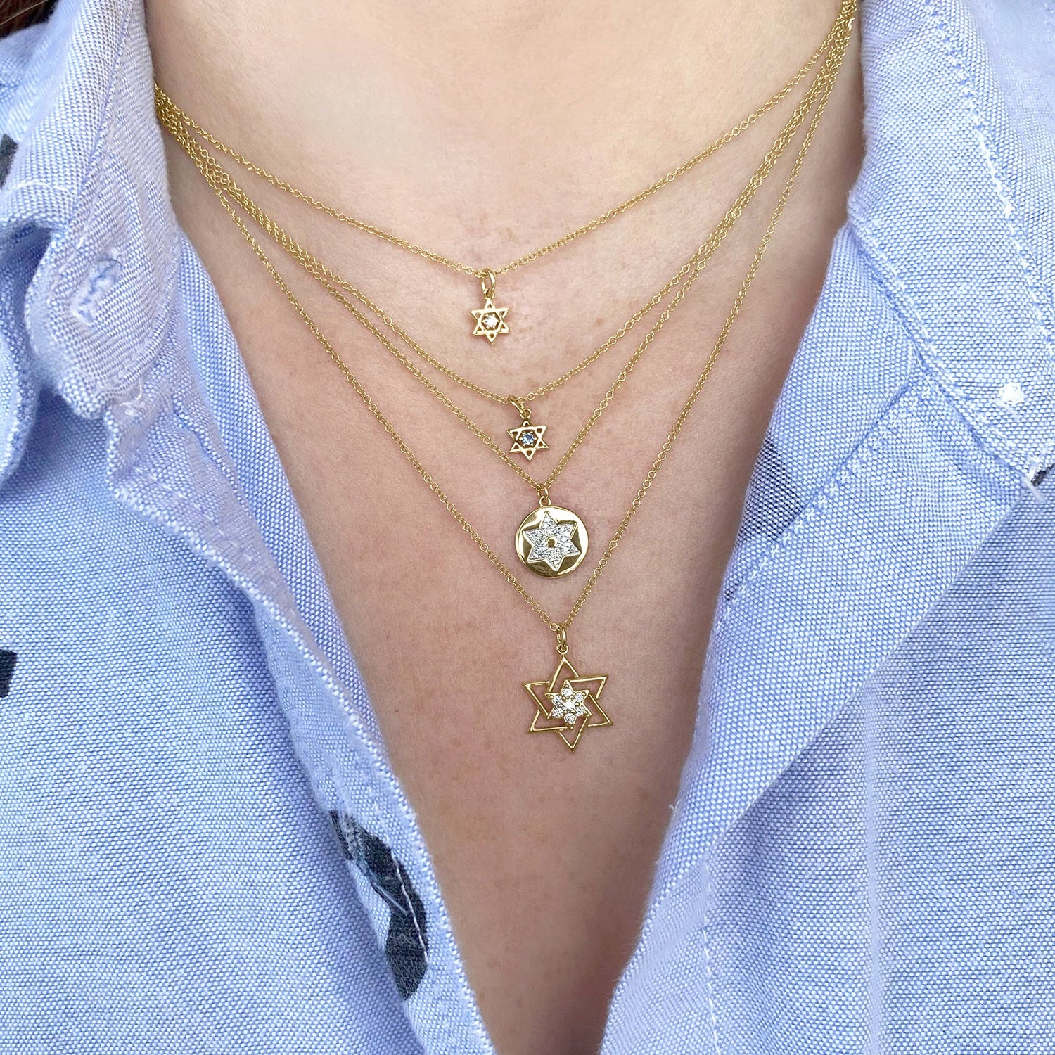 Discover the enchanting allure of our Blue Sapphire Jewish Star of David Petite Pendant Necklace,...