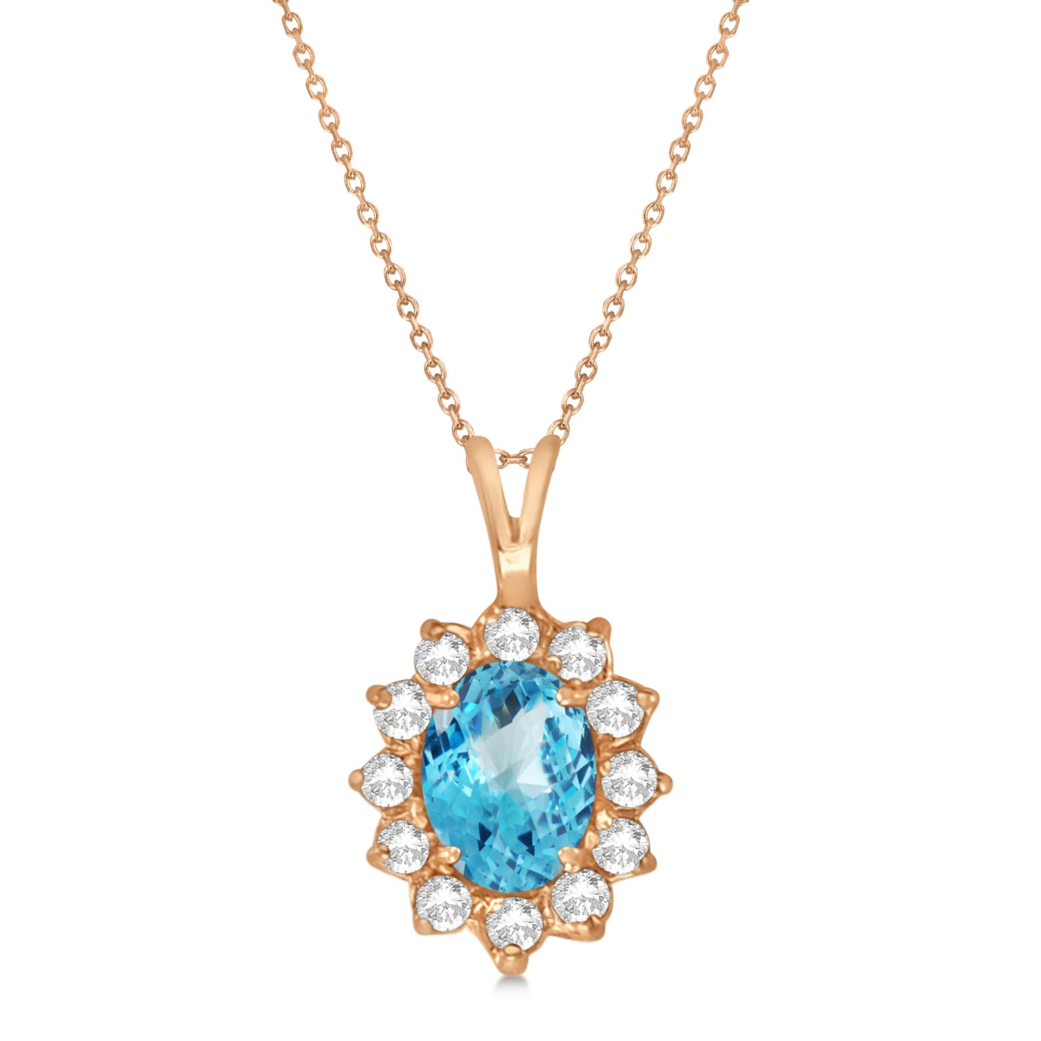Blue Topaz & Diamond Accented Pendant Necklace 14k Rose Gold (1.70ctw)