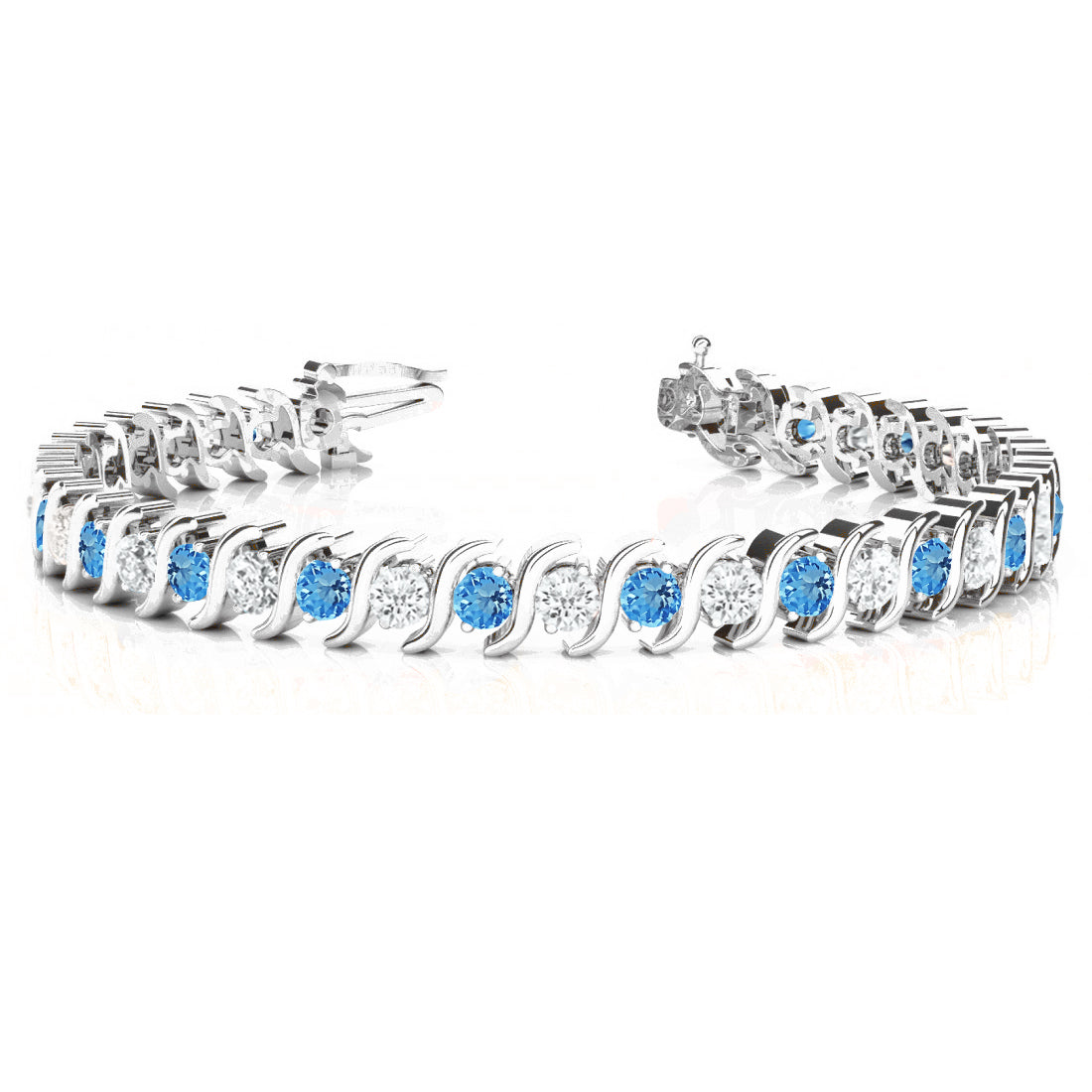Blue Topaz Tennis S Link Bracelet 14k White Gold (4.00ct)