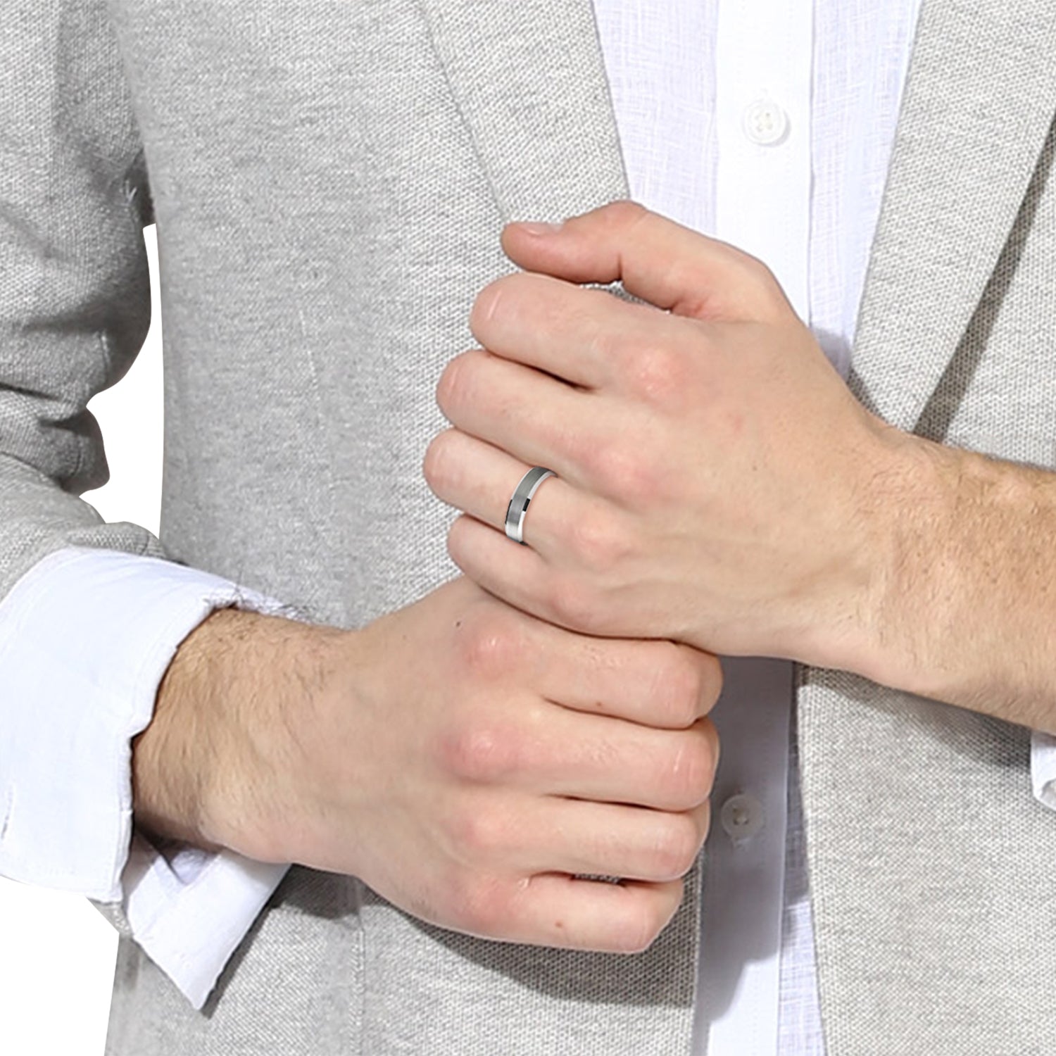 This wedding season, compliment him with a 7mm Allurez wedding band he truly deserves. This style has a conservative design that is flat with beveled edges. The center is brush finished, leaving only the beveled edges polished for the perfect amount of shine.