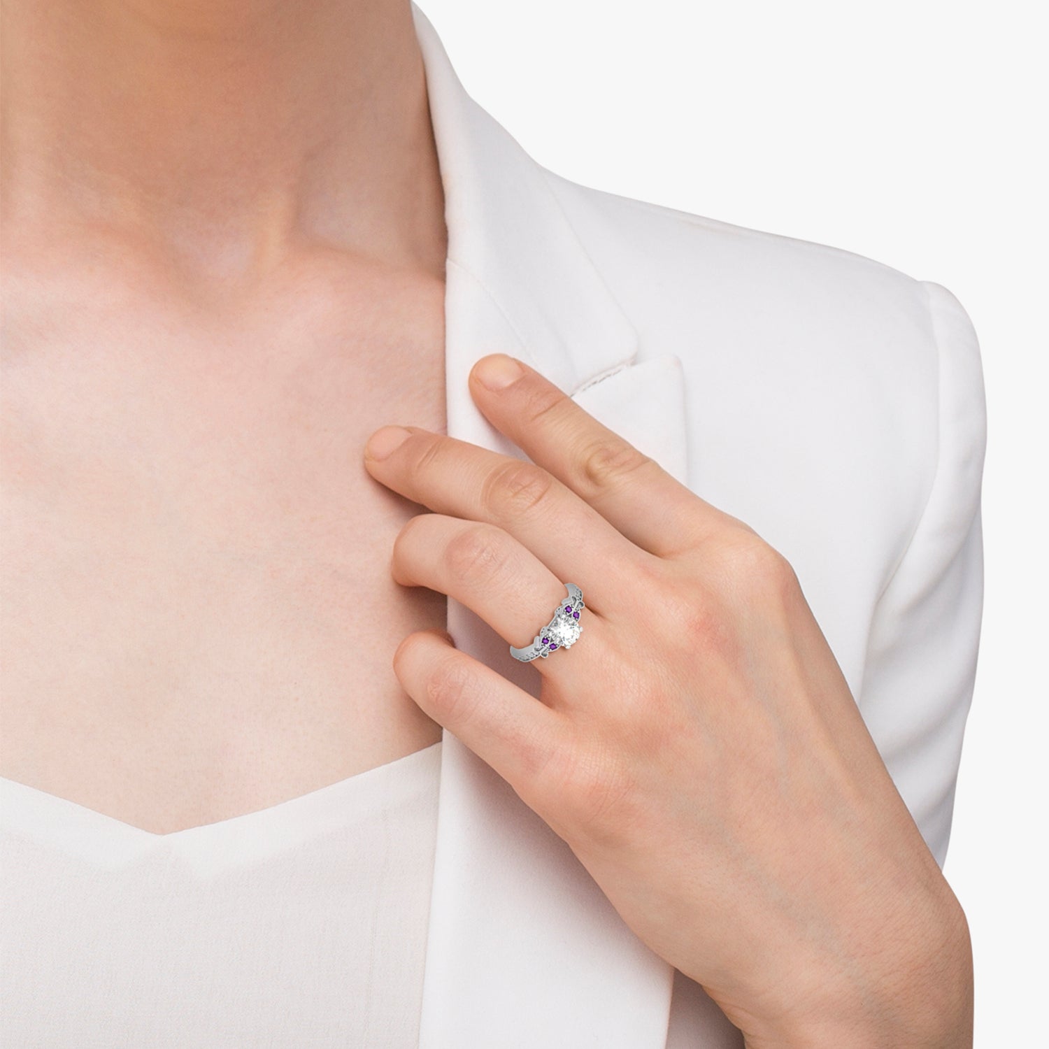 Butterfly Diamond & Amethyst Engagement Ring 14k White Gold (0.20ct)
