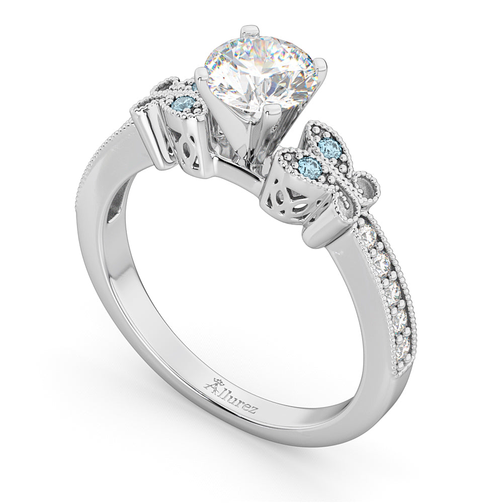 Butterfly Diamond & Aquamarine Engagement Ring 14k White Gold (0.20ct)