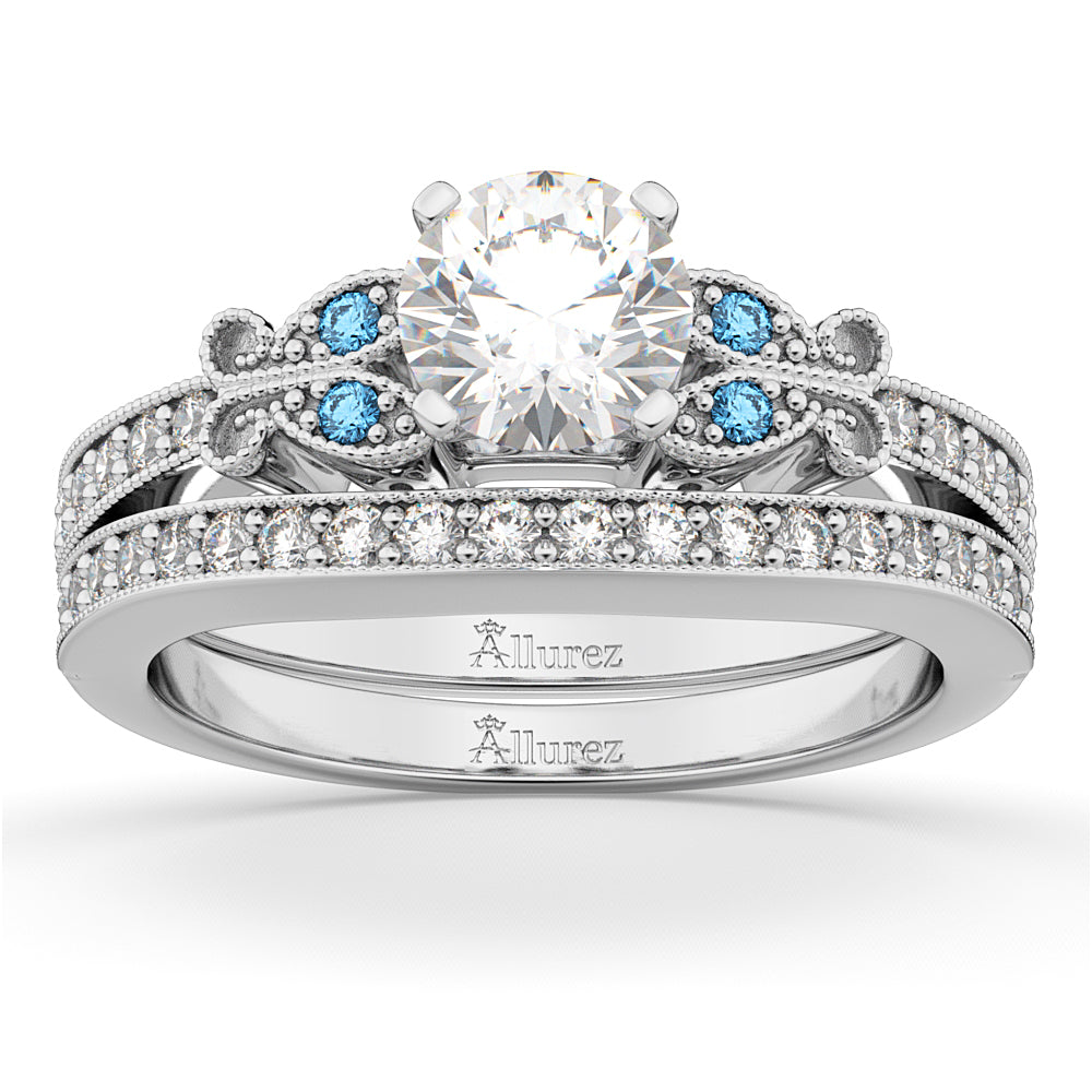 Butterfly Diamond & Blue Topaz Bridal Set 18k White Gold (0.42ct)