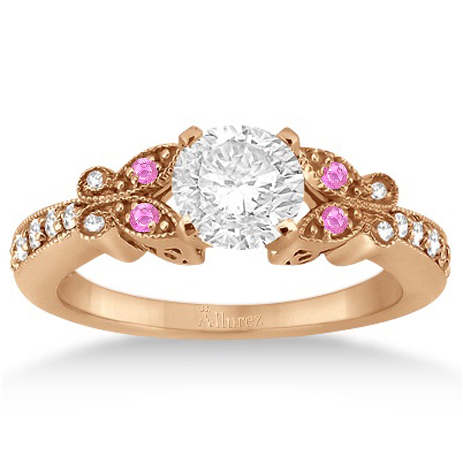 Butterfly Diamond & Pink Sapphire Bridal Set 14k Rose Gold (0.42ct)