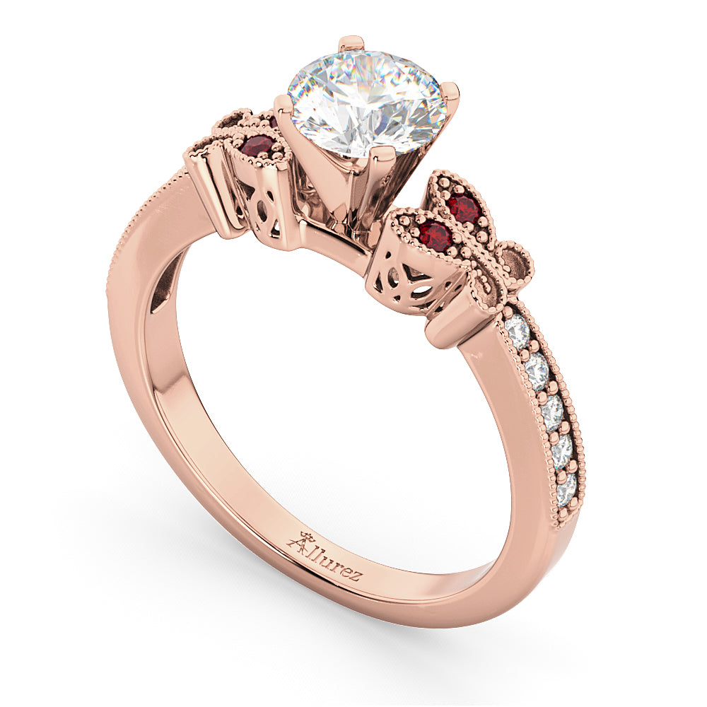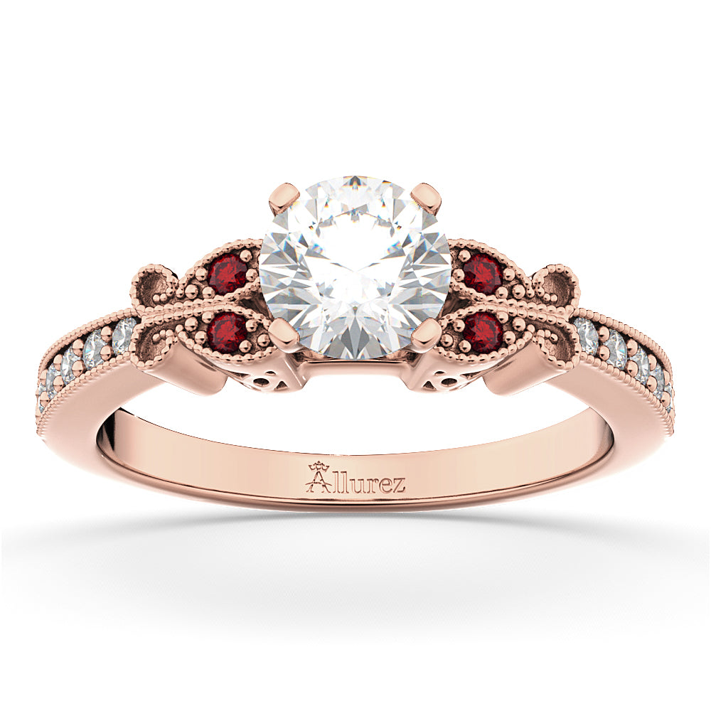 Butterfly Diamond & Ruby Engagement Ring 18k Rose Gold (0.20ct)