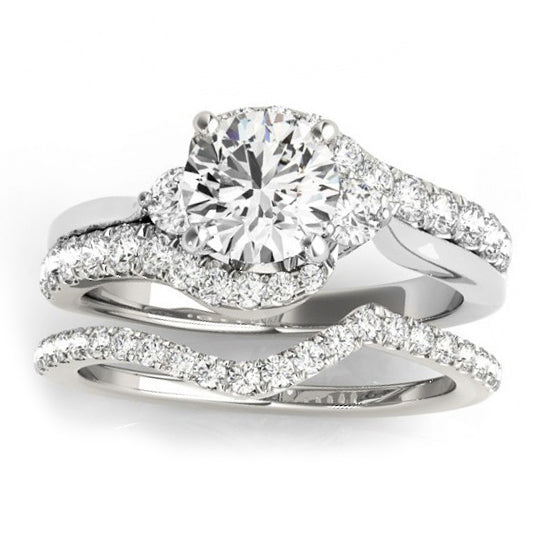 Bypass Engagement Ring & Curved Band Bridal Set 14k W. Gold 0.67ct