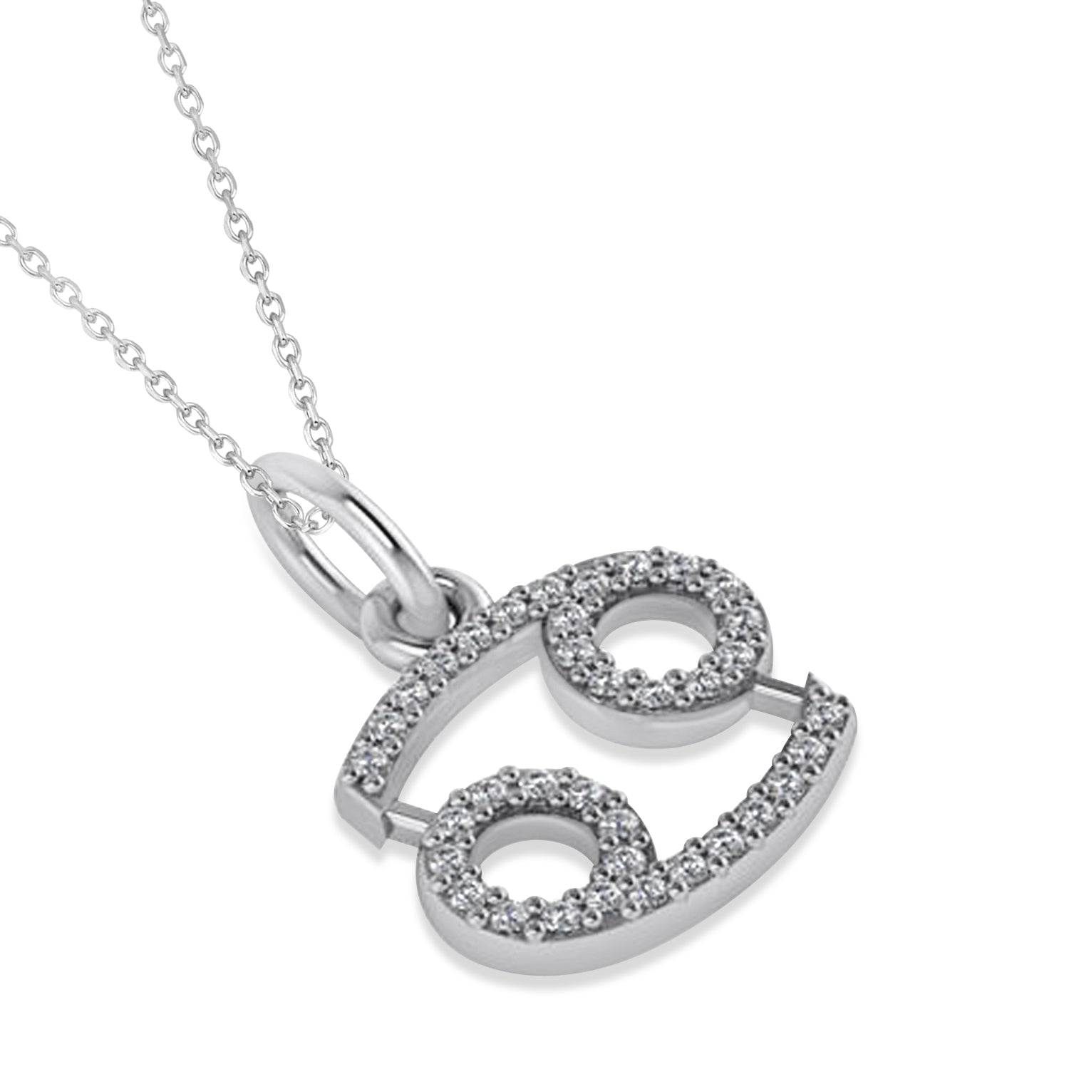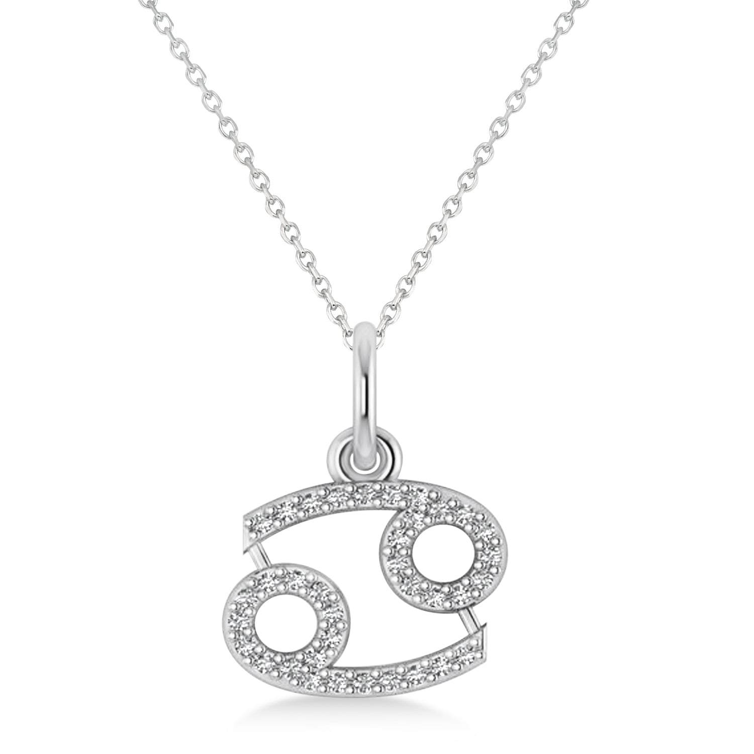 Cancer Zodiac Diamond Pendant Necklace 14k White Gold (0.18ct)