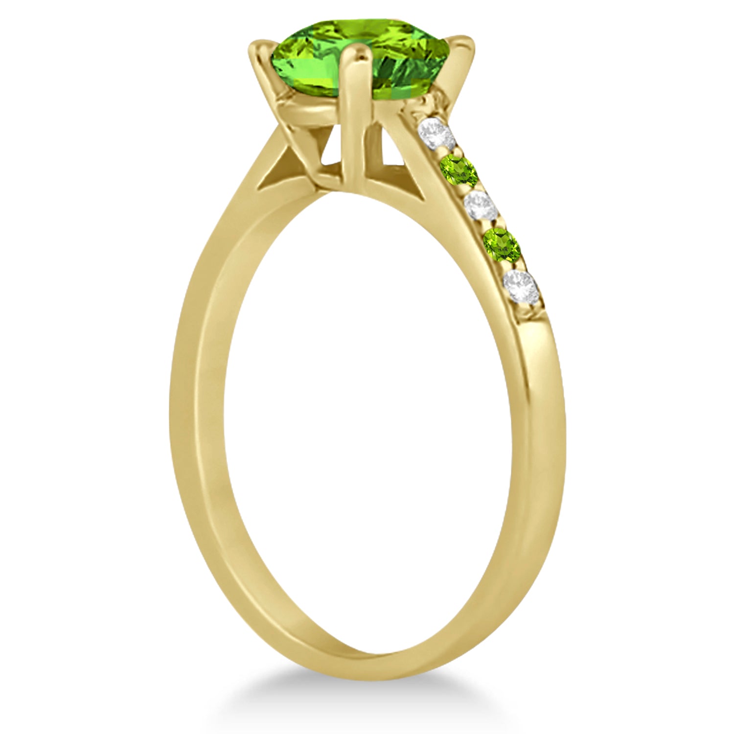 Cathedral Peridot & Diamond Engagement Ring 14k Yellow Gold (1.20ct)