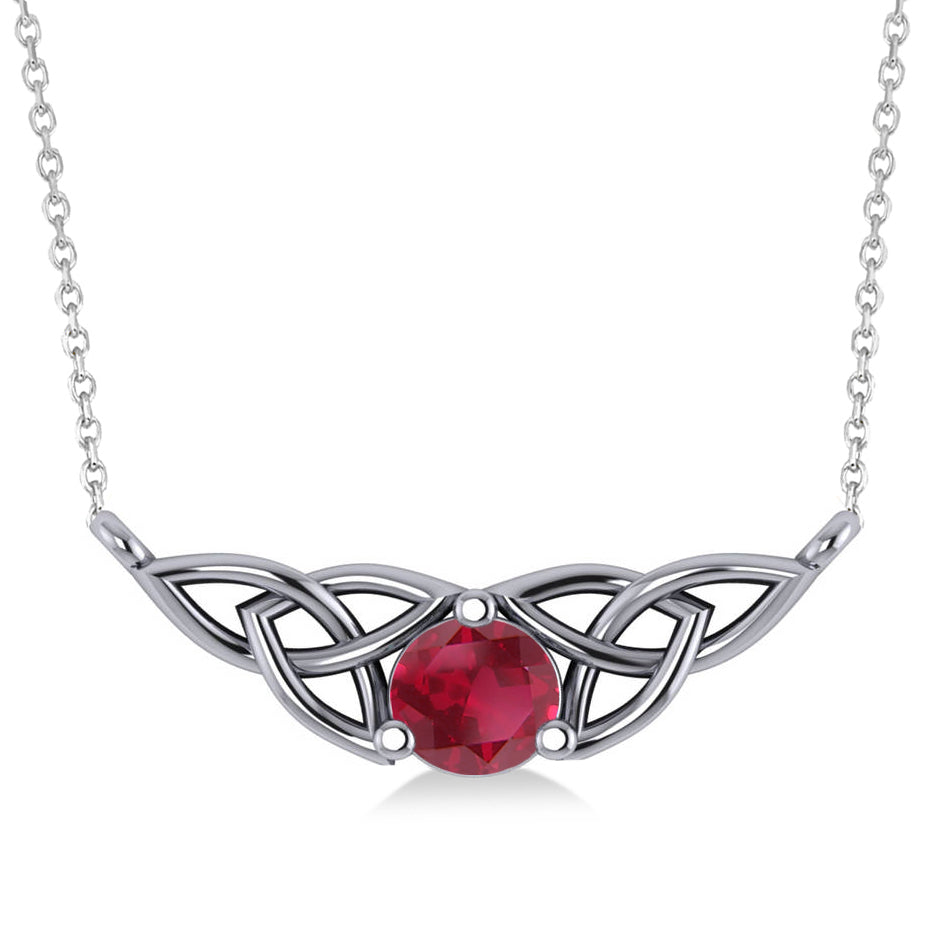 Celtic Round Ruby Pendant Necklace 14k White Gold (0.60ct)