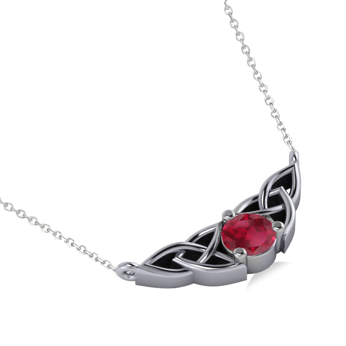 Express your Irish heritage with this 14k white gold round Celtic ruby pendant necklace.