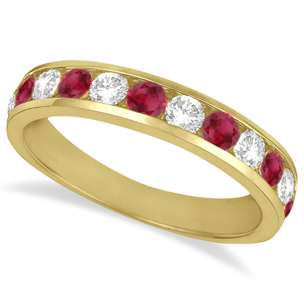 Channel-Set Ruby & Diamond Ring Band 14k Yellow Gold (1.20ctw)