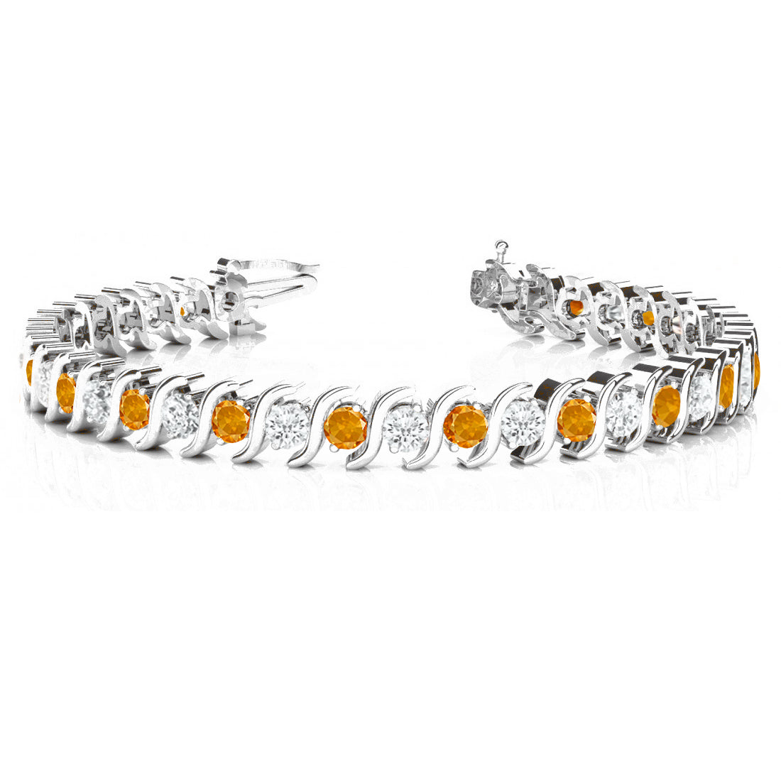 Citrine & Diamond Tennis S Link Bracelet 14k White Gold (4.00ct)
