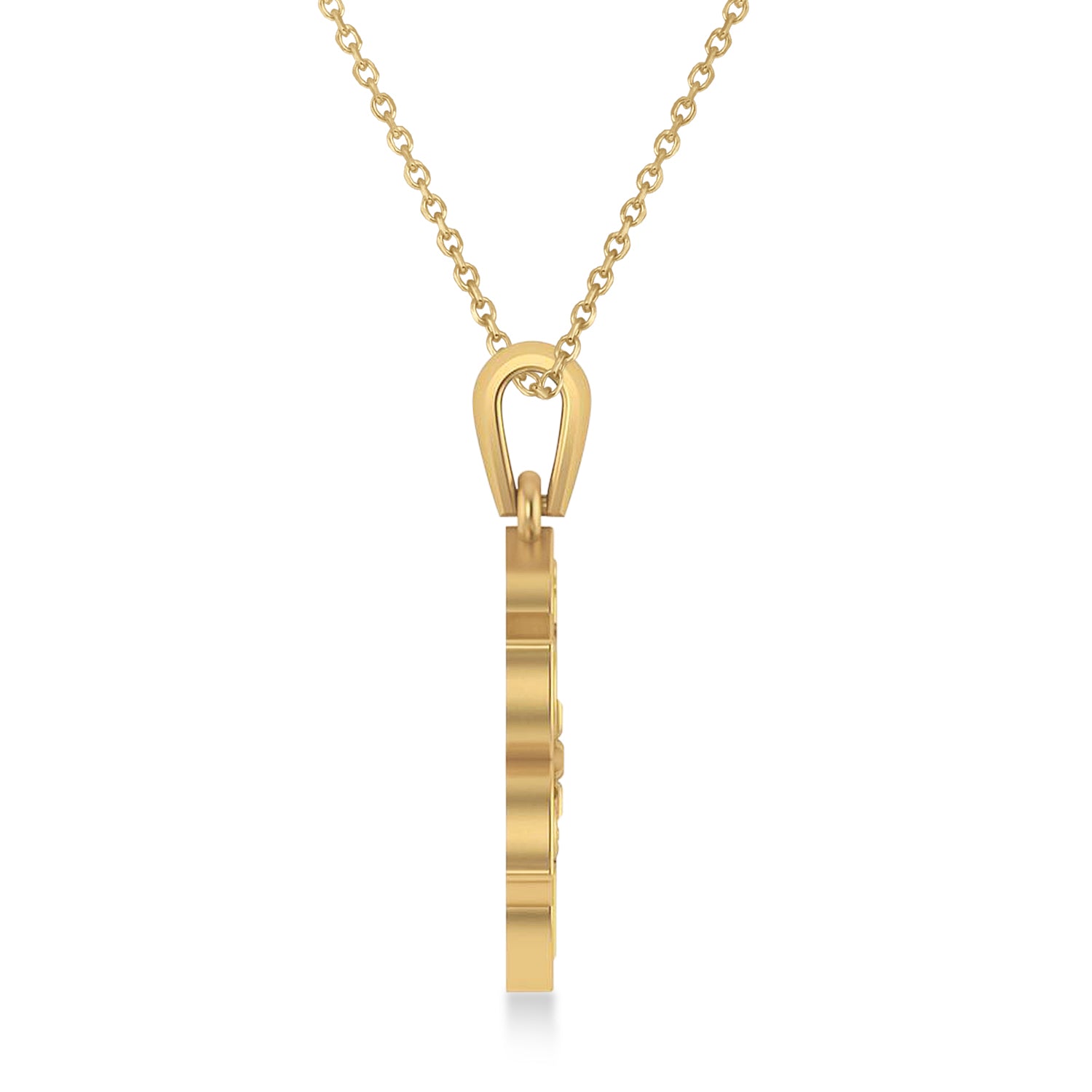 Coexist Symbols on Lotus Flower Pendant Necklace 14k Yellow Gold