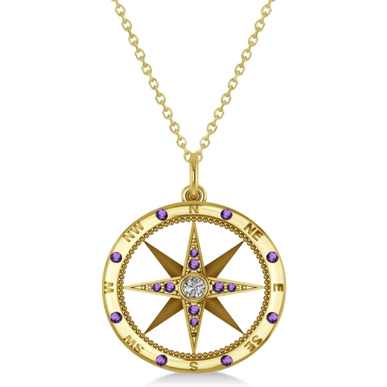 Compass Pendant Amethyst & Diamond Accented 14k Yellow Gold (0.19ct)