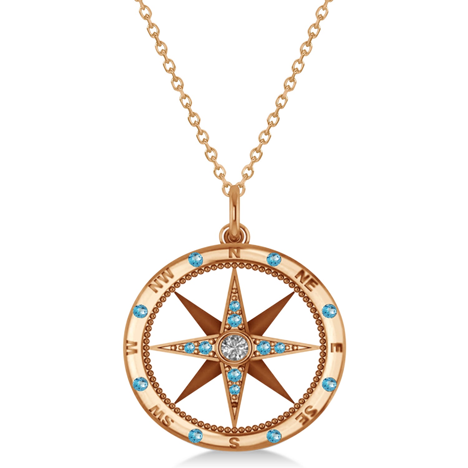 Compass Pendant Blue Topaz & Diamond Accented 14k Rose Gold (0.19ct)