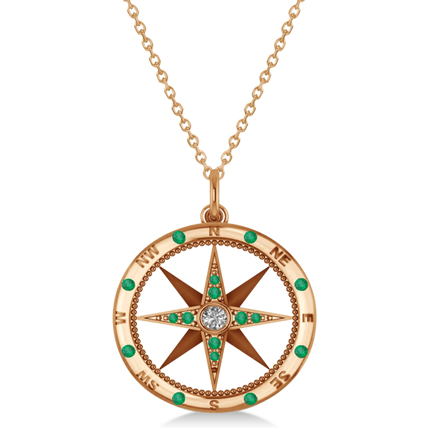 Compass Pendant Emerald & Diamond Accented 18k Rose Gold (0.19ct)