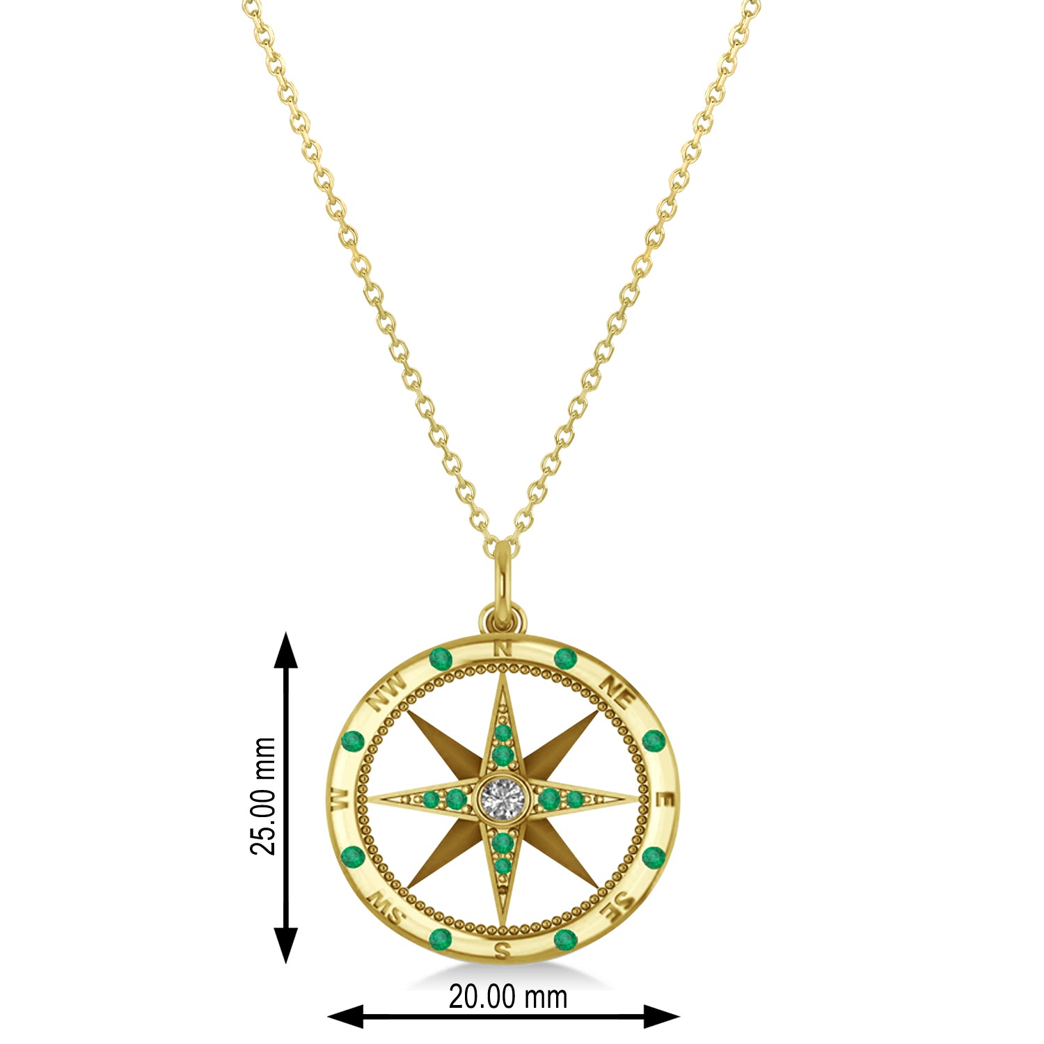 Compass Pendant Emerald & Diamond Accented 18k Yellow Gold (0.19ct)