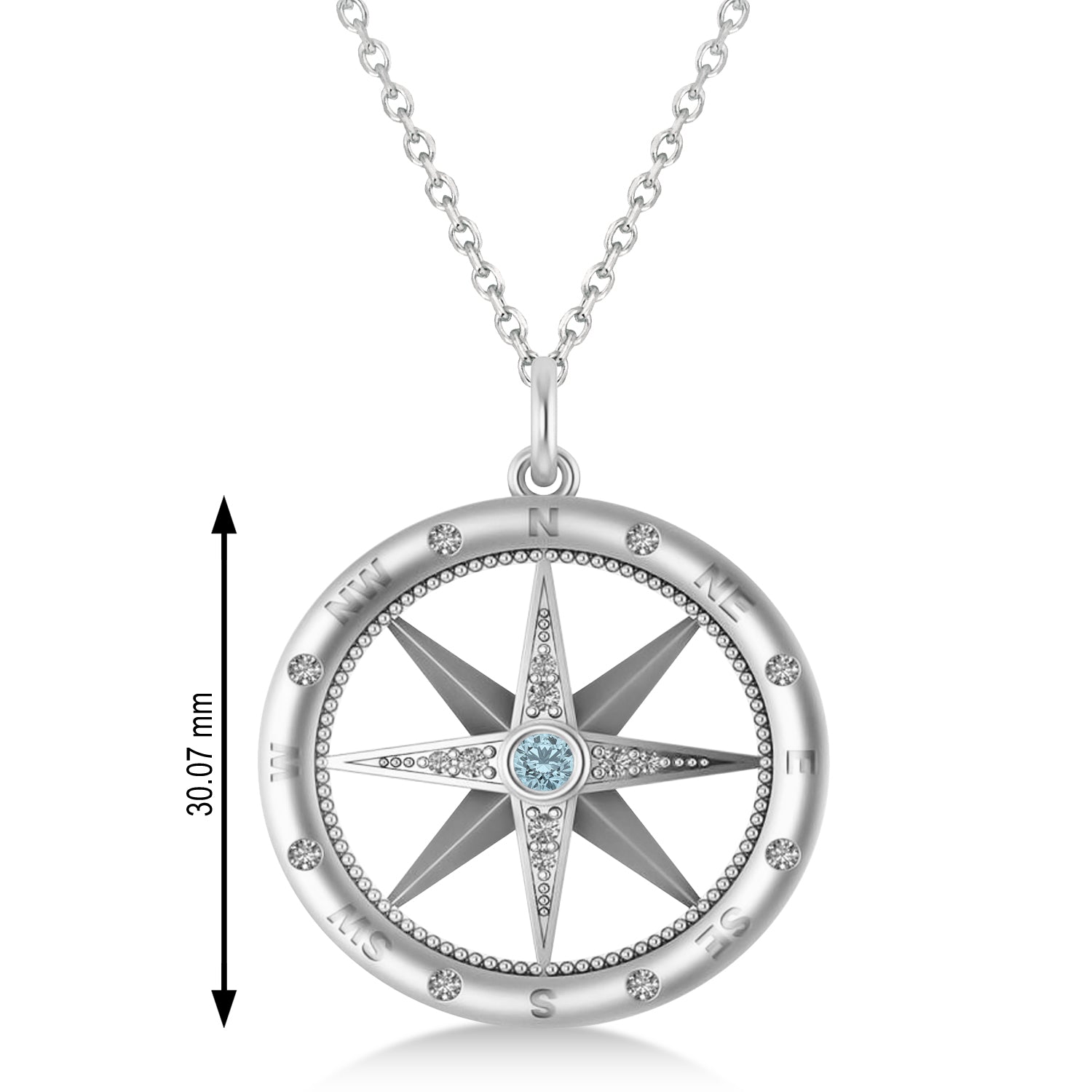 Compass Pendant For Men Aquamarine & Diamond Accented 14k White Gold (0.38ct)