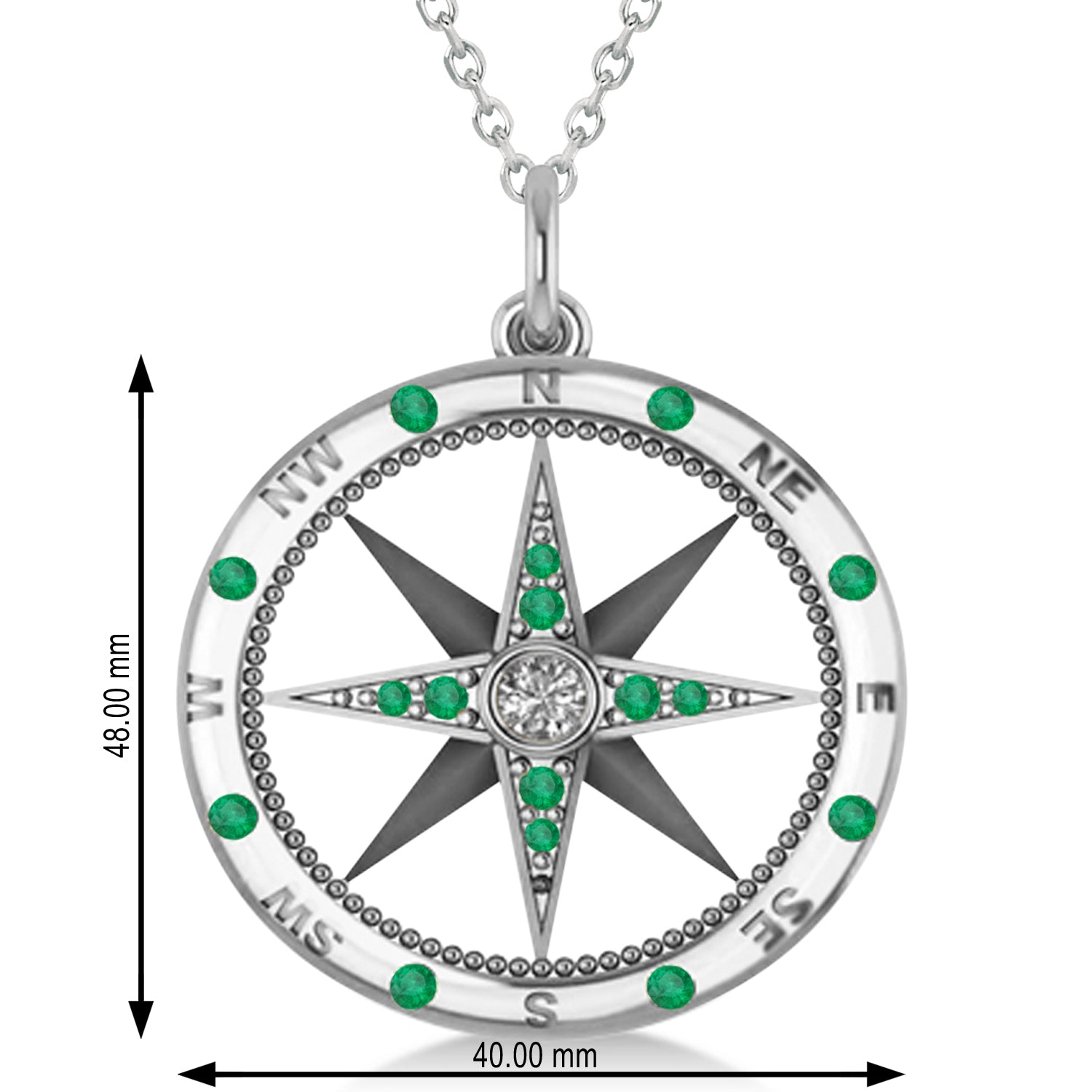 Compass Pendant For Men Emerald & Diamond Accented 14k White Gold (0.45ct)