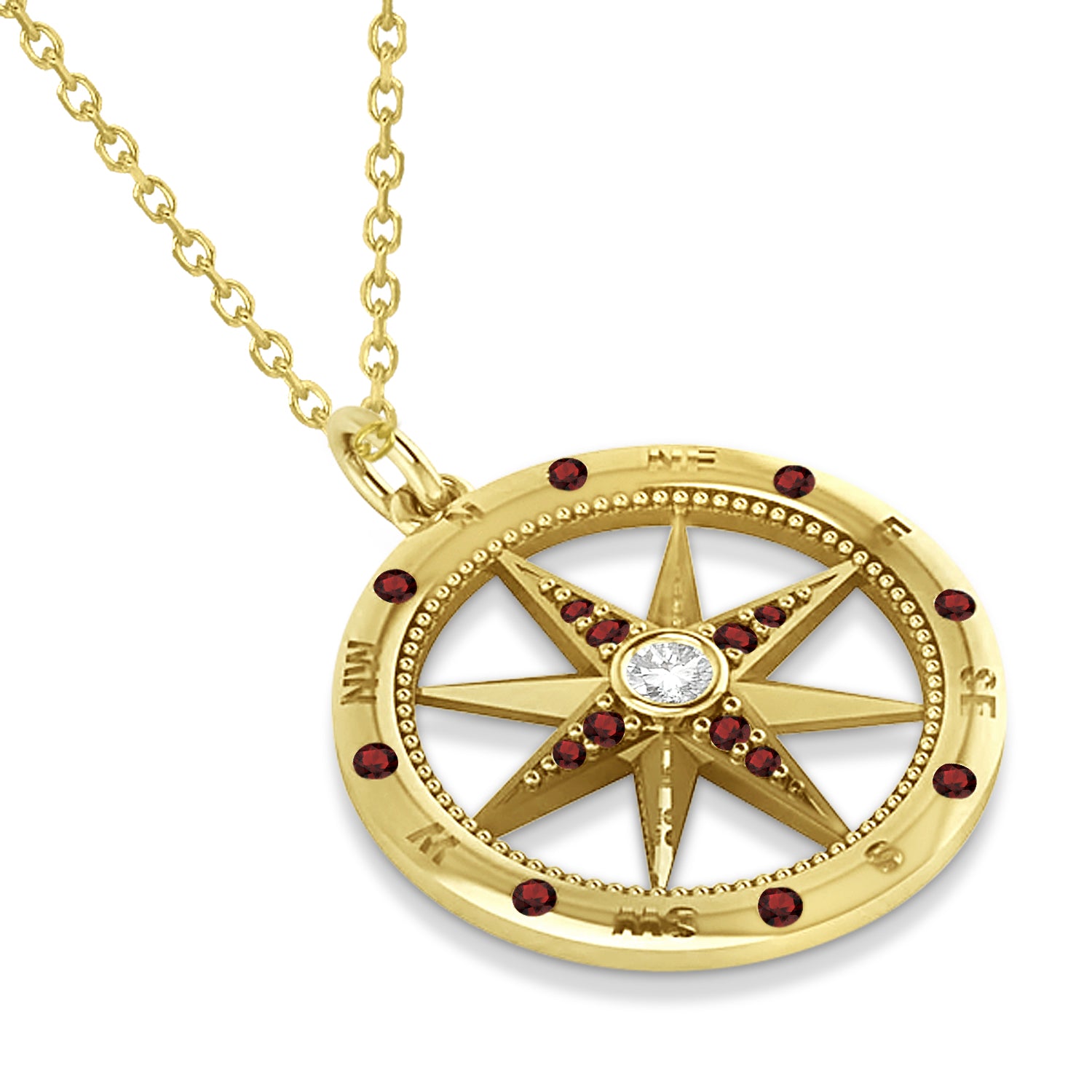 Compass Pendant Garnet & Diamond Accented 14k Yellow Gold (0.19ct)