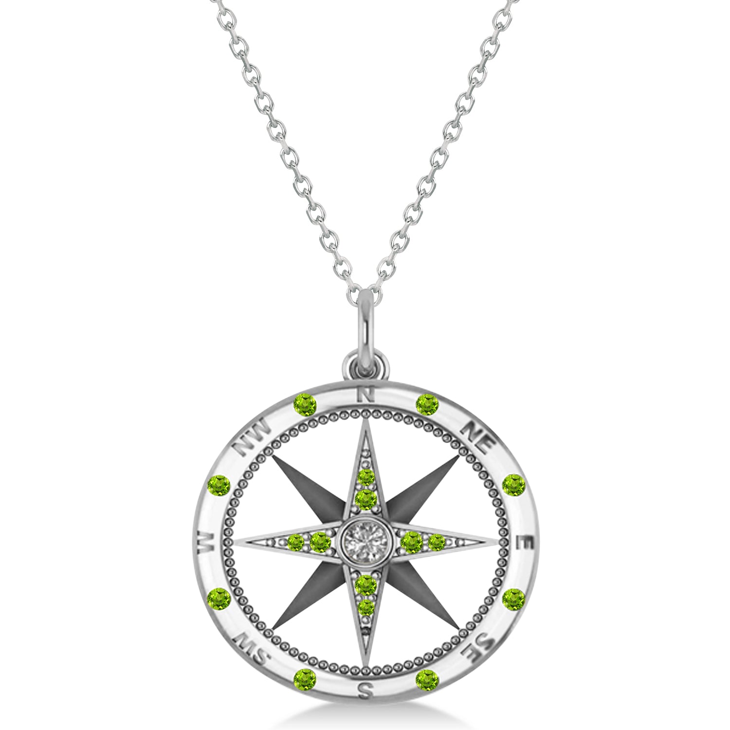 Compass Pendant Peridot & Diamond Accented 18k White Gold (0.19ct)