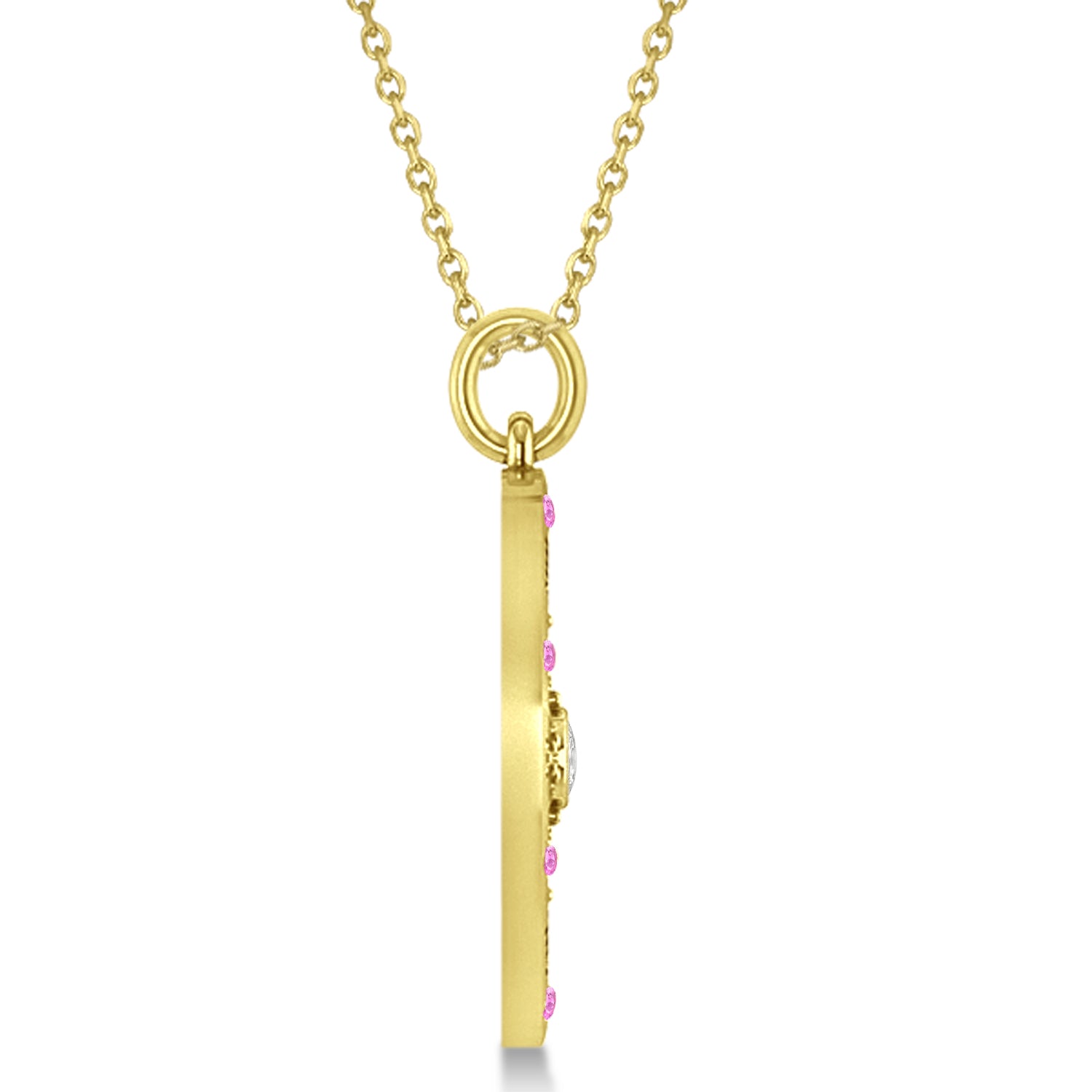 Compass Pendant Pink Sapphire & Diamond Accented 18k Yellow Gold (0.19ct)