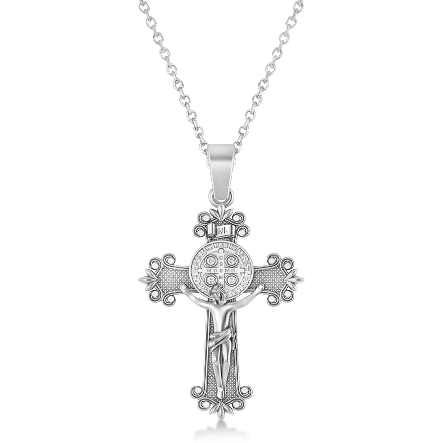 Cross Benedict Crucifix Pendant Necklace 14k White Gold