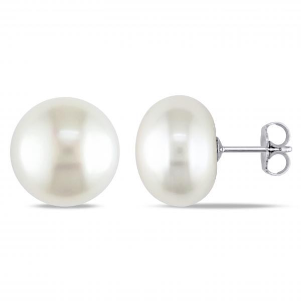 Cultured Freshwater Button Pearl Stud Earrings 14k White Gold 13-14mm