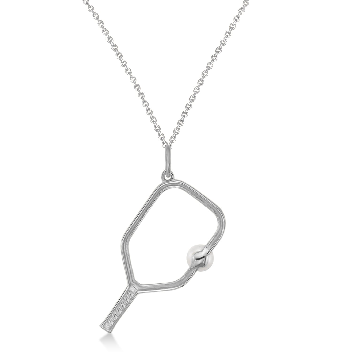 Cultured Pearl Ball & Pickleball Paddle Pendant Necklace 14K White Gold