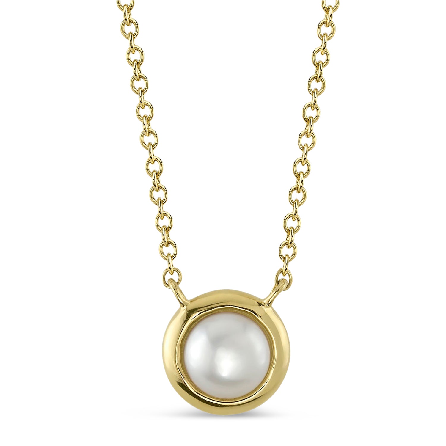 Embrace classic elegance with this Cultured Pearl Circle Pendant Necklace in 14K Yellow Gold. Showcasing a lustrous 5mm pearl in a sleek circular setting, this refined piece is perfect for any occasion. A symbol of purity and sophistication, it makes a meaningful gift. Ideal for both everyday wear and special moments.