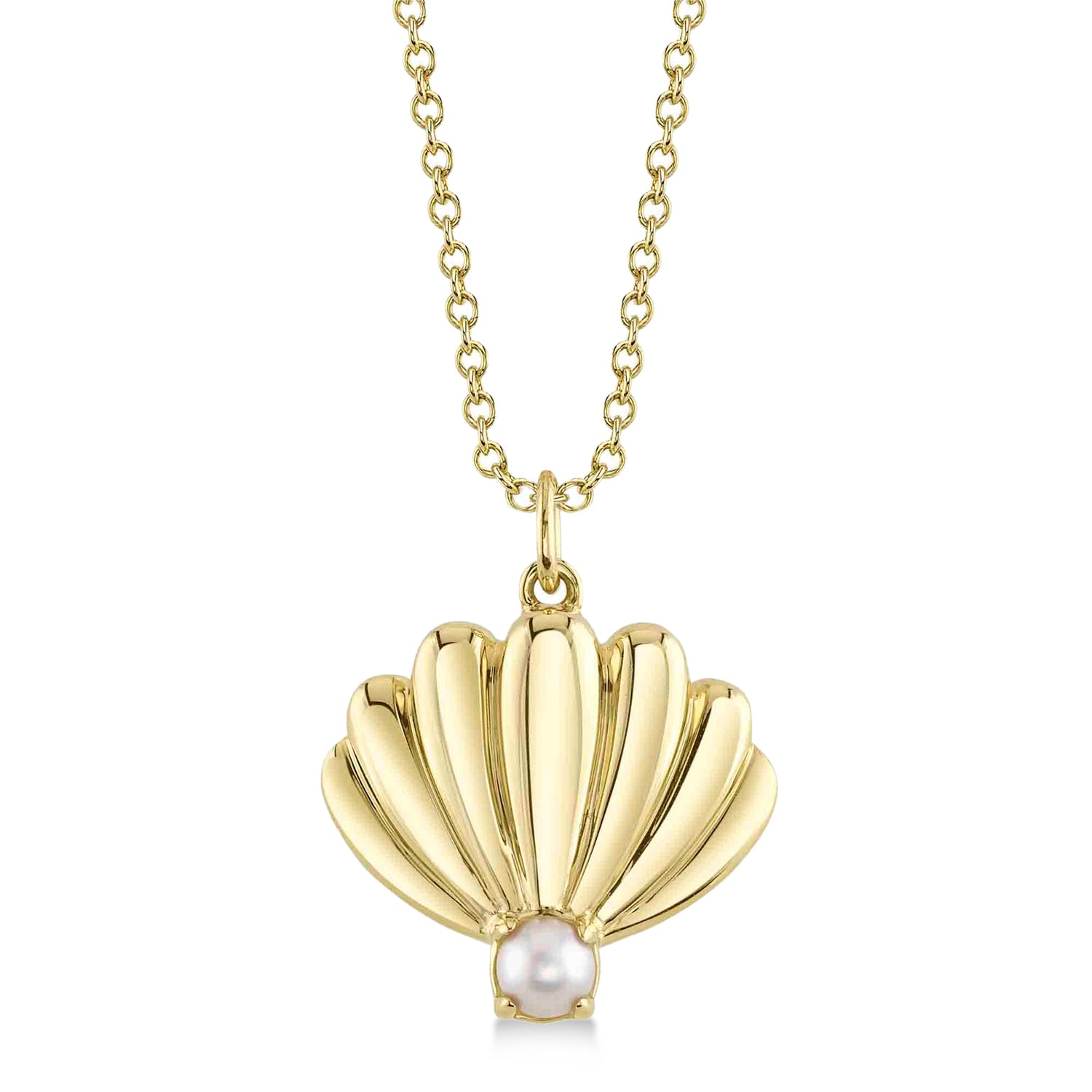 Elegant and timeless, this Cultured Pearl Shell Pendant Necklace in 14K Yellow Gold features a luminous 3.5mm pearl set within a delicate shell design. A symbol of beauty and sophistication, perfect for any occasion. Crafted with fine materials, this necklace adds a touch of ocean-inspired elegance to your jewelry collection.