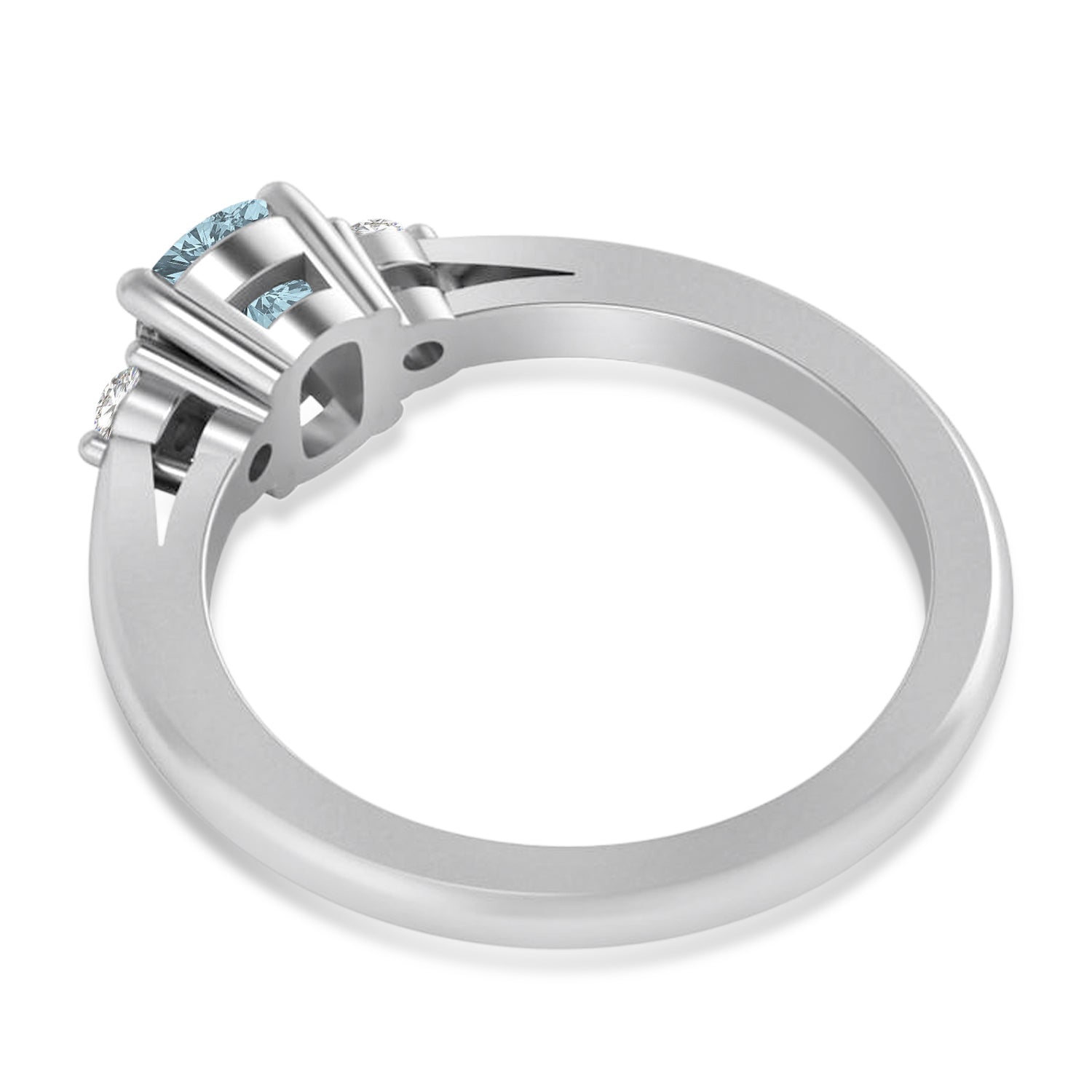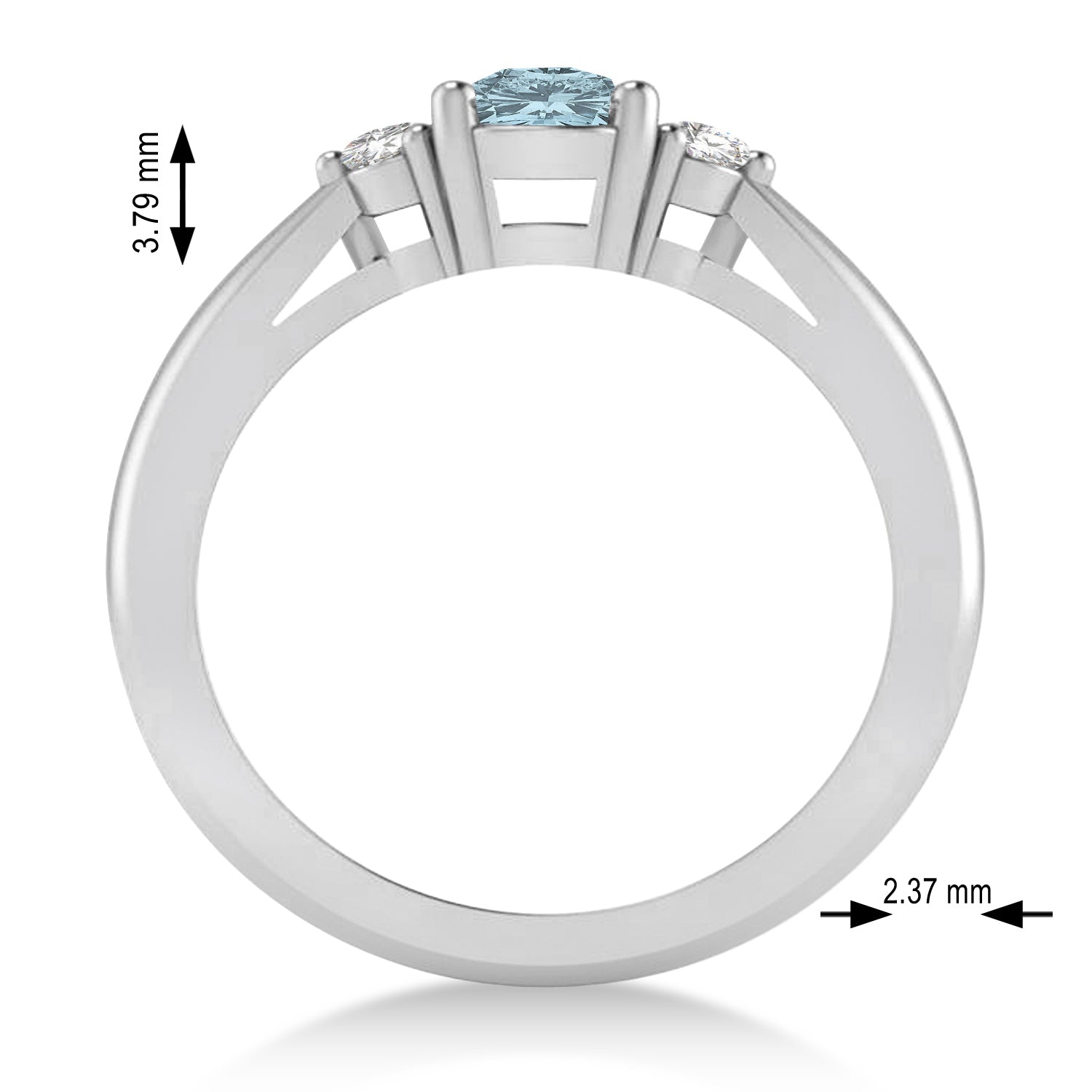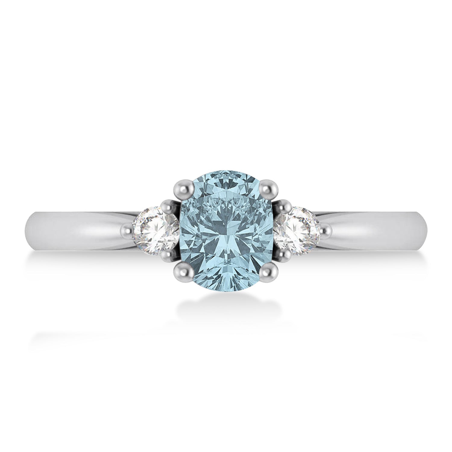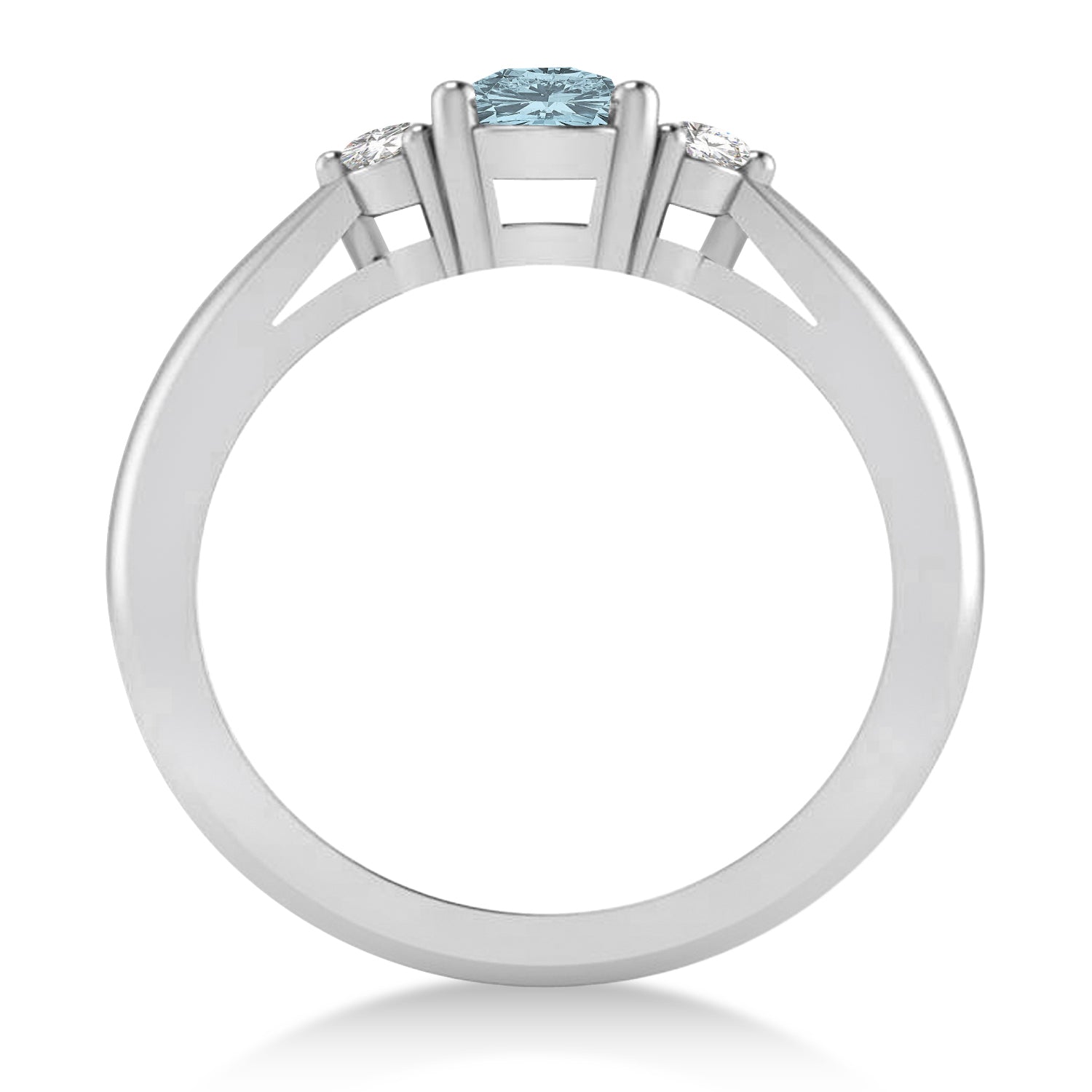 Cushion Aquamarine & Diamond Three-Stone Engagement Ring 14k White Gold (1.14ct)