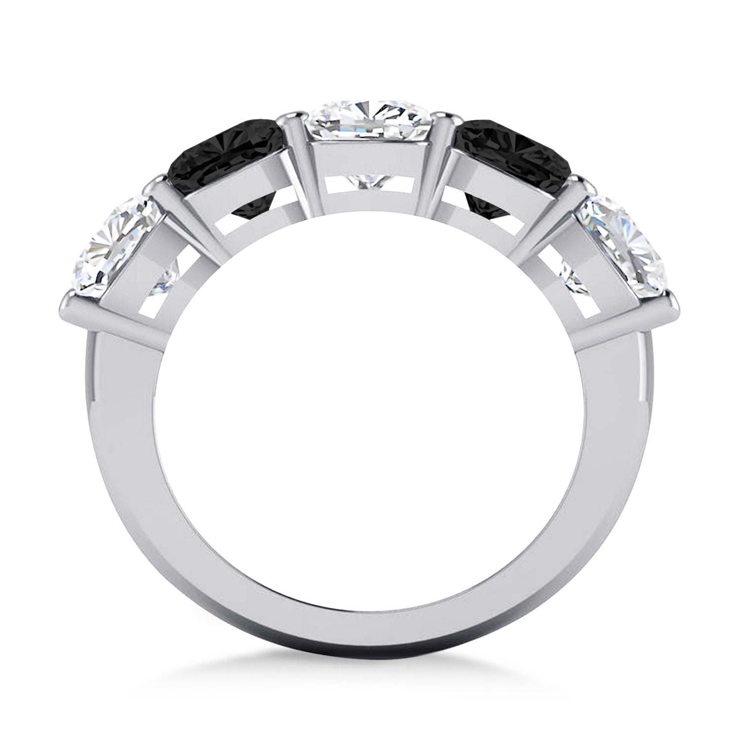 Cushion Black & White Diamond Five Stone Ring 14k White Gold (5.00ct)