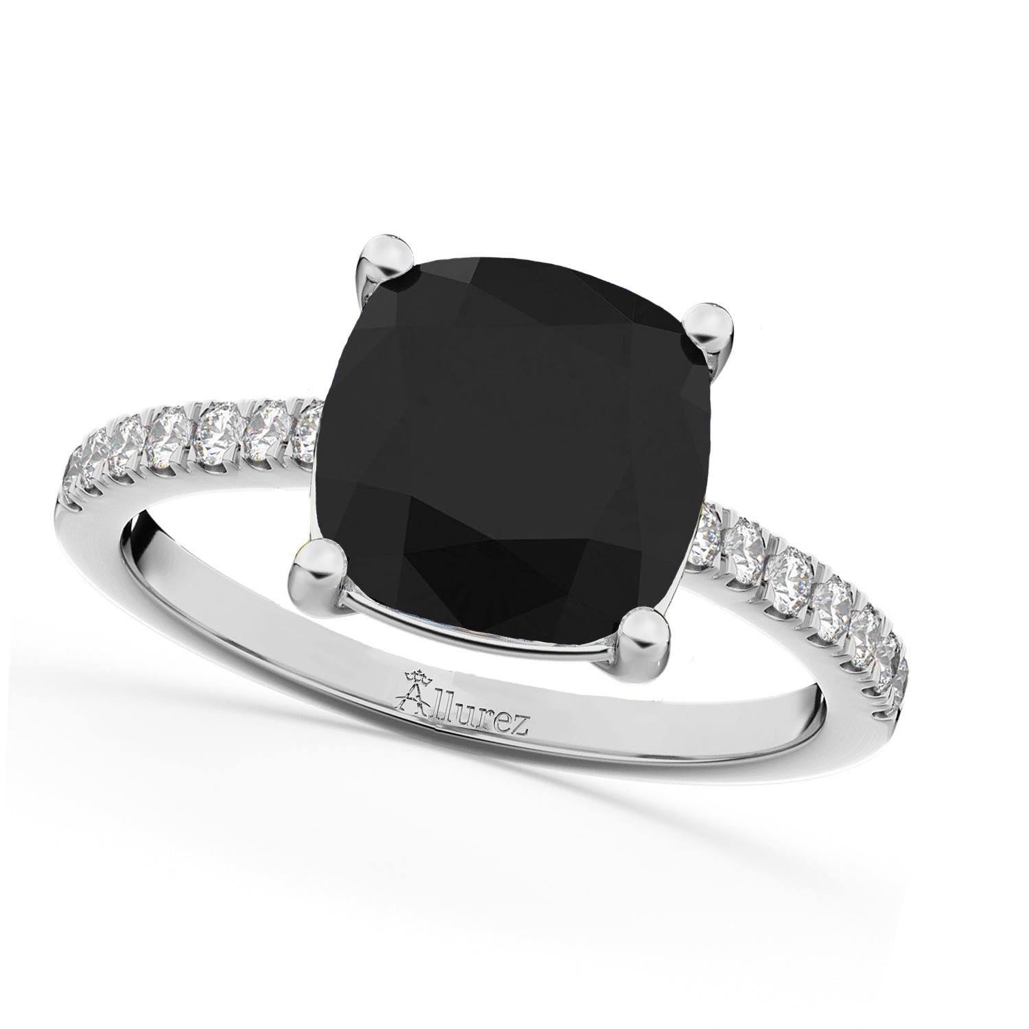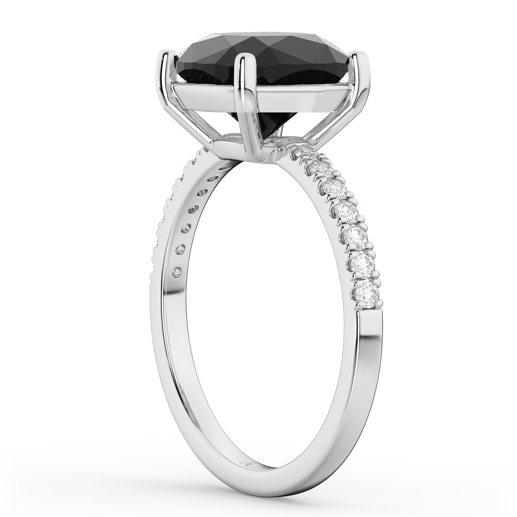 Cushion Cut Black Diamond Engagement Ring 14k White Gold (2.25ct)