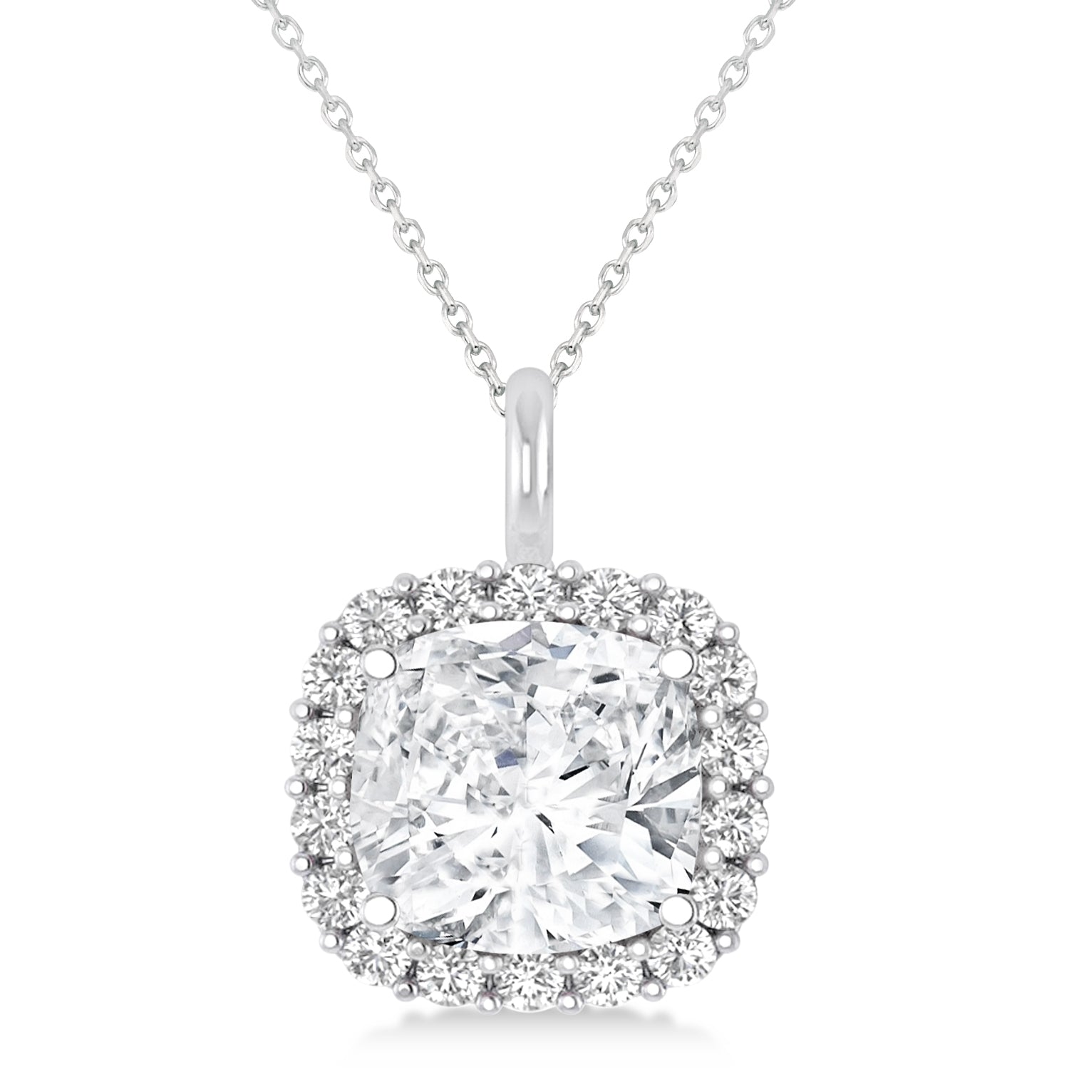 With an elegant yet timeless design, this cushion cut diamond halo pendant is sure to...