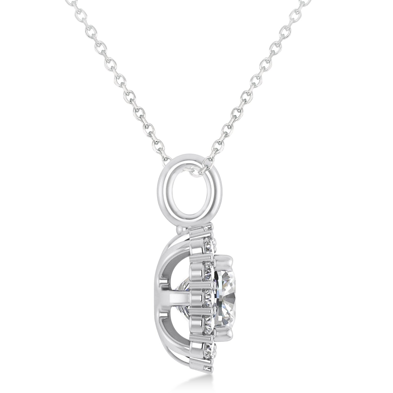 Cushion Cut Diamond Halo Pendant 14k White Gold (0.78ct)
