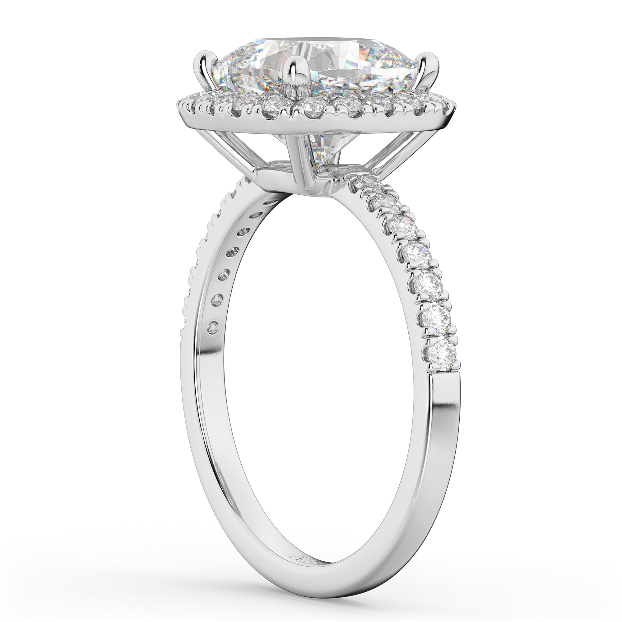 Cushion Cut Halo Diamond Engagement Ring 14k White Gold (2.55ct)