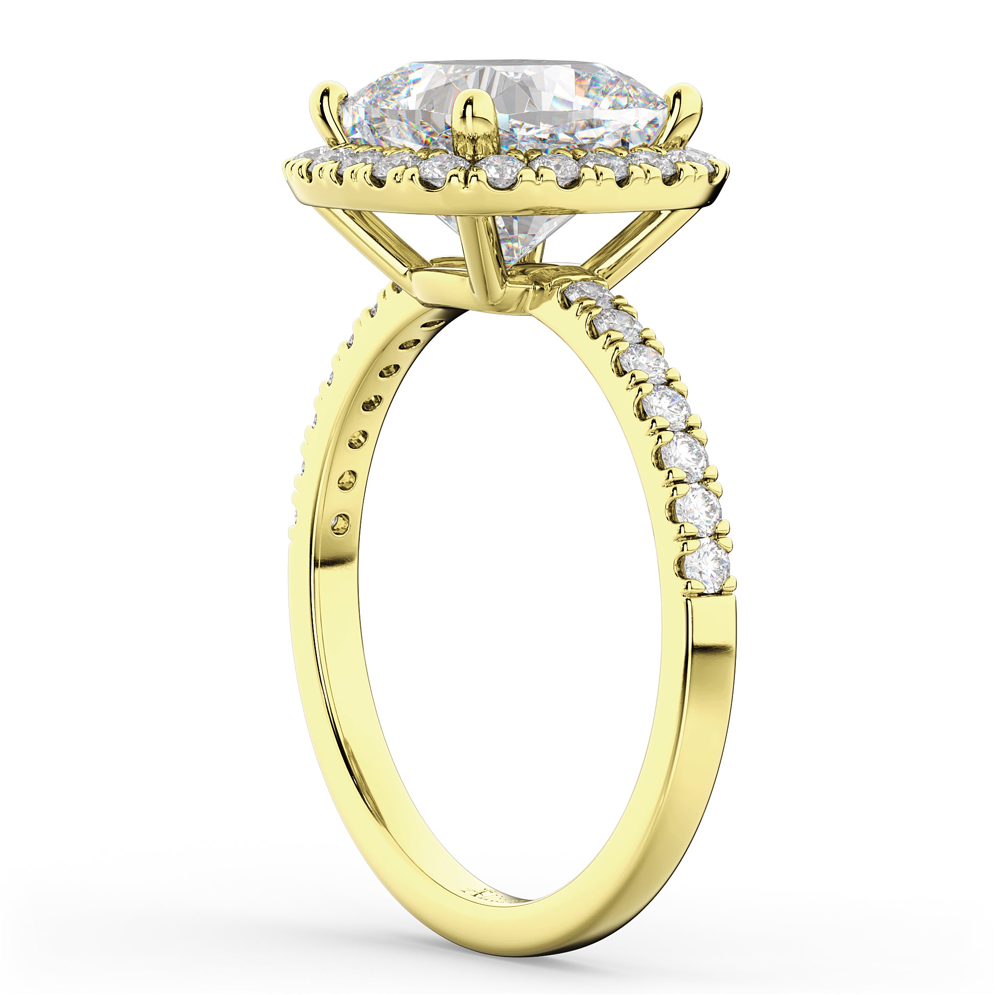 Cushion Cut Halo Diamond Engagement Ring 14k Yellow Gold (2.55ct)