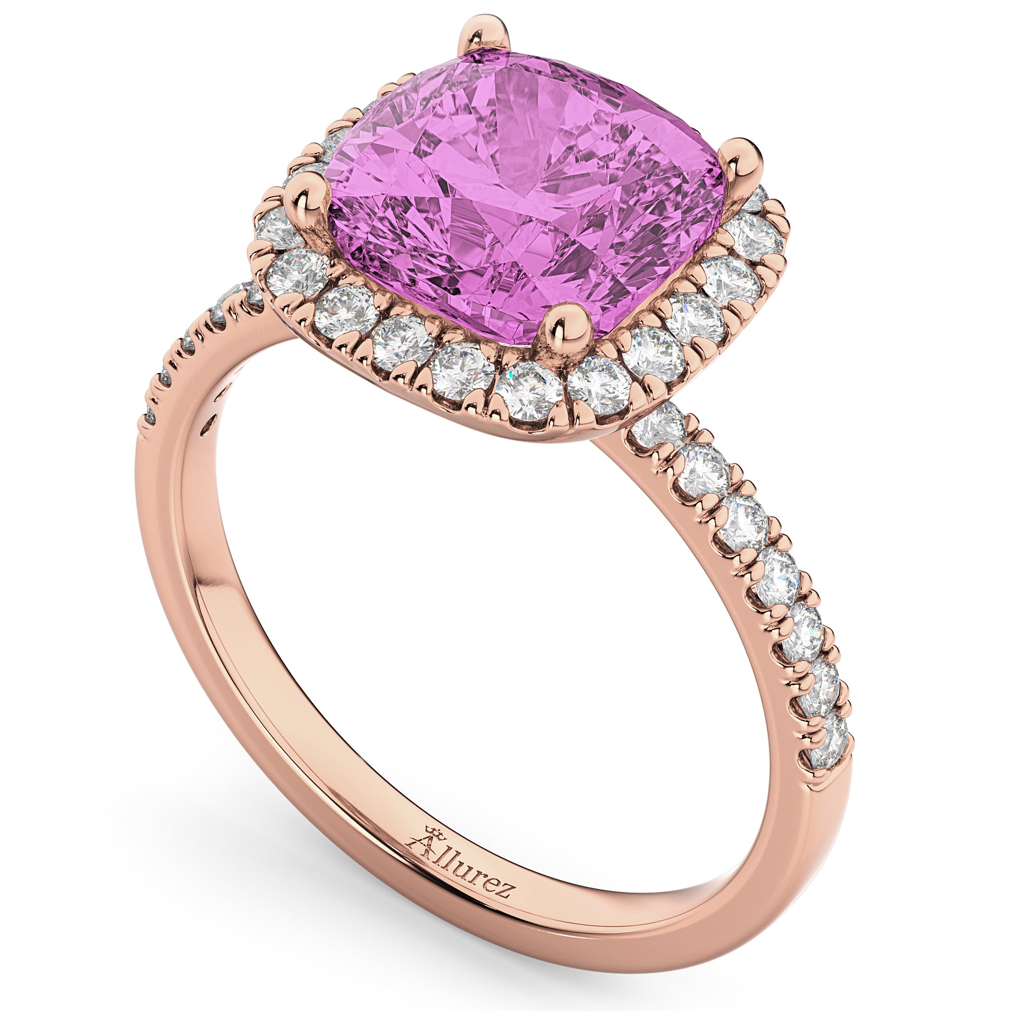 Cushion Cut Halo Lab Pink Sapphire & Lab Diamond Engagement Ring 14k Rose Gold (3.11ct)