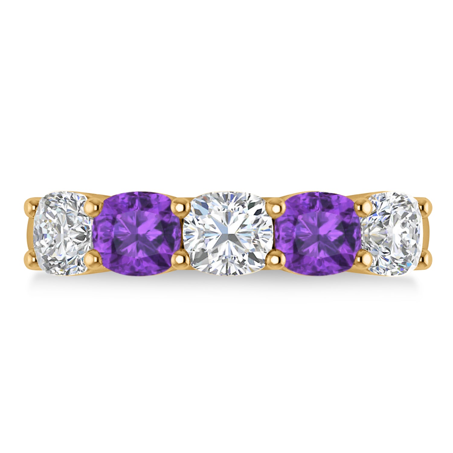 Cushion Diamond & Amethyst Five Stone Ring 14k Yellow Gold (2.70ct)