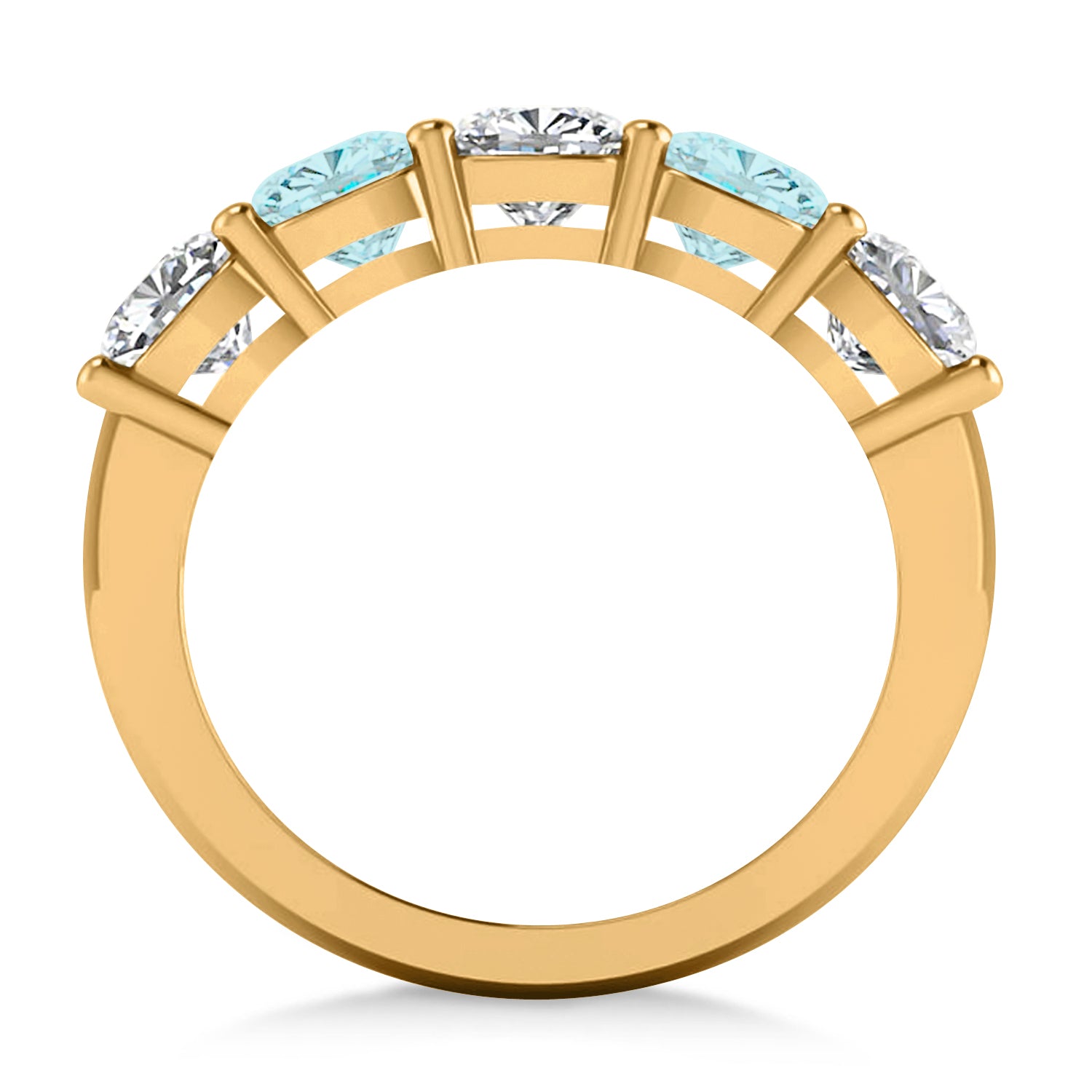 Cushion Diamond & Aquamarine Five Stone Ring 14k Yellow Gold (2.70ct)